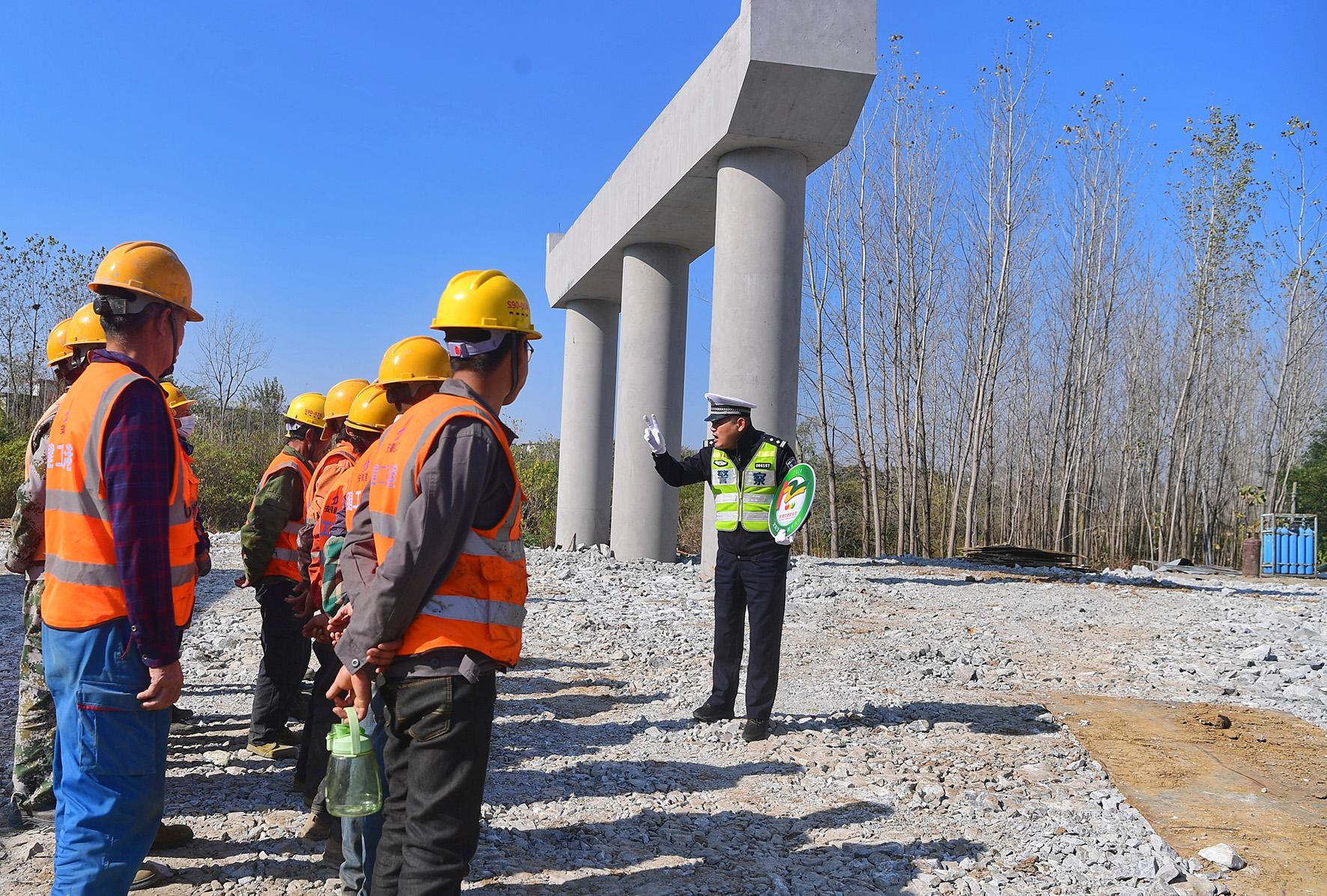 11月30日,安徽省巢湖市公安局交警大隊民警在合蕪高速公路肥東段路基項目部施工現場開展交通安全教育活動。