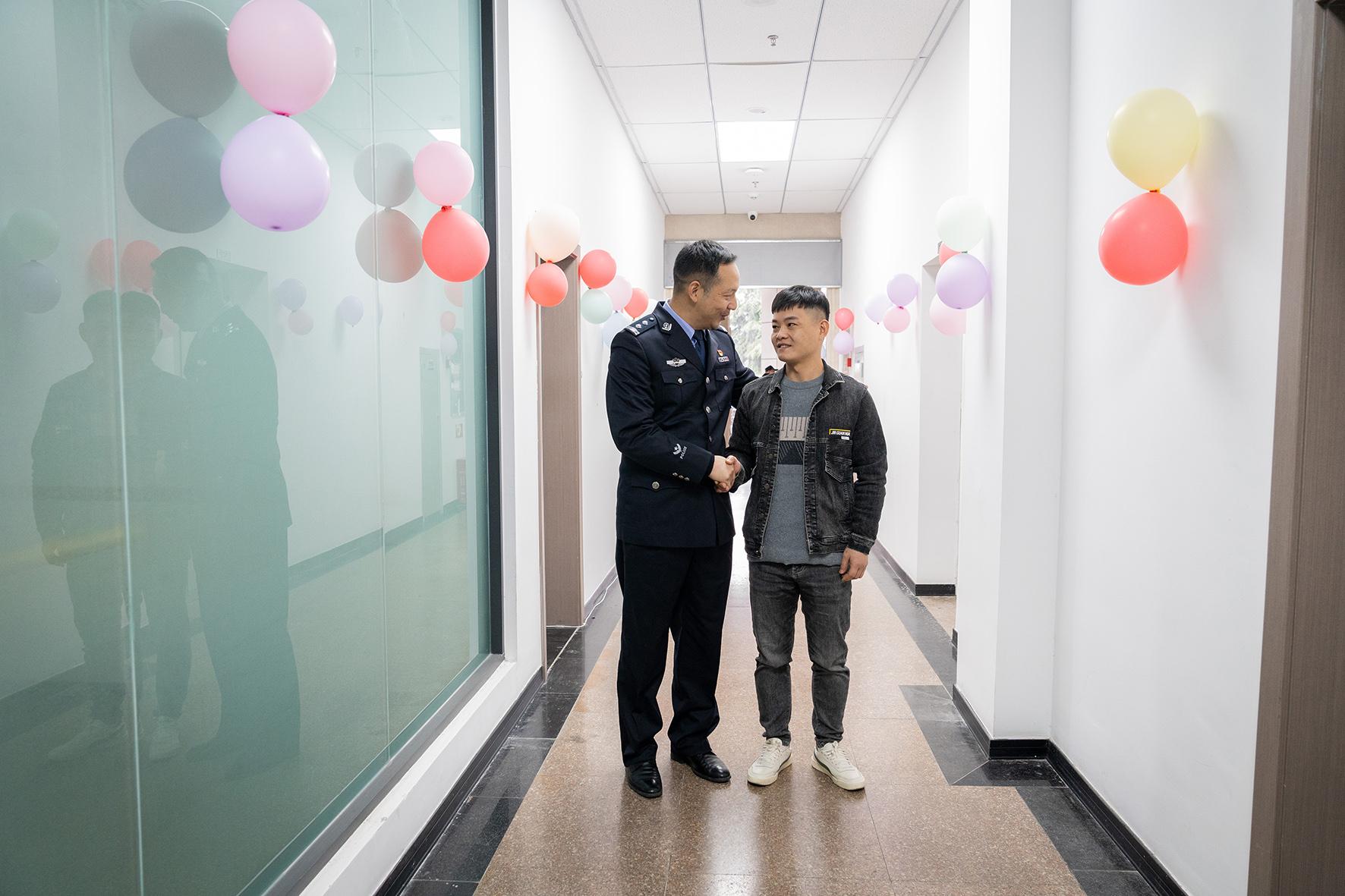 圖1:胡祥雨警官安慰著即將見到親人的蔡先生。