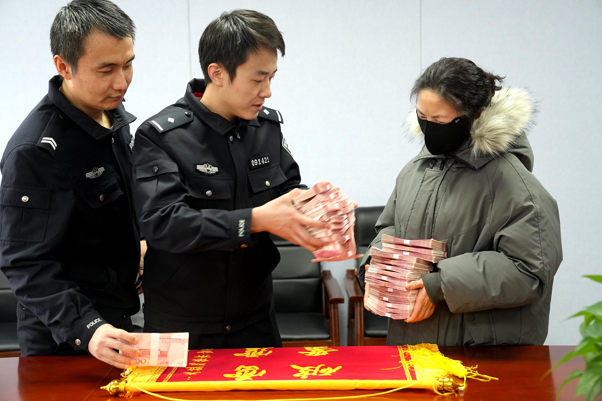 1月7日,新疆維吾爾自治區(qū)克拉瑪依市公安局白堿灘區(qū)分局舉行資金返還儀式,將26.8萬元被騙資金返還給受害人。