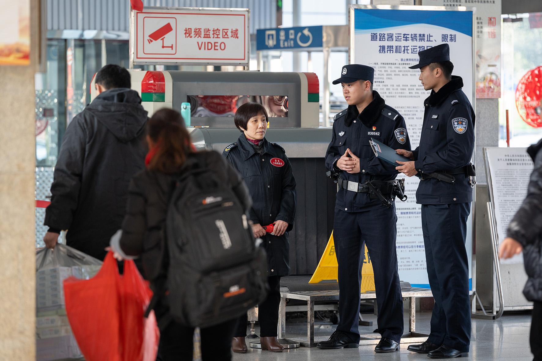 1月16日,四川省綿陽(yáng)市公安局涪城區(qū)分局花園派出所民警向車(chē)站工作人員了解春運(yùn)期間車(chē)站安全相關(guān)事宜。