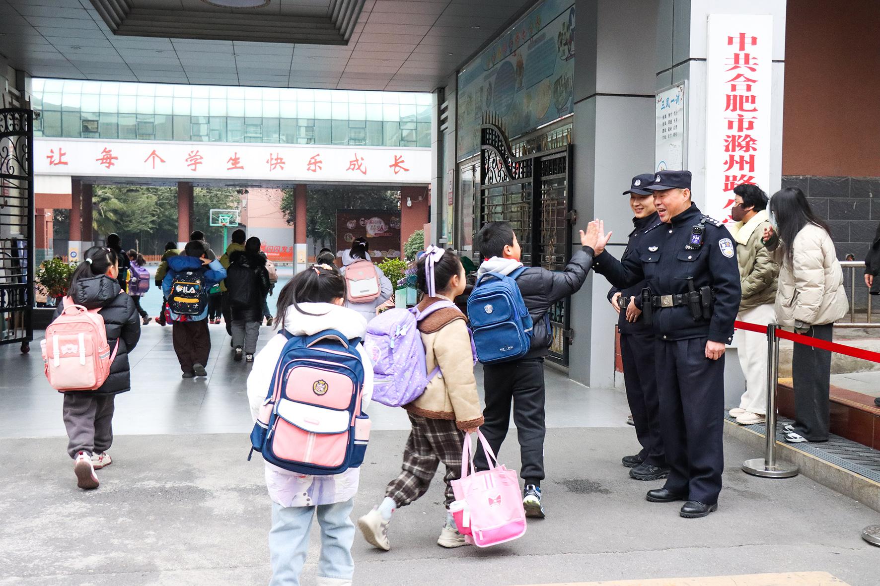 2月14日,安徽省合肥市公安局瑤海分局大通路派出所民警輔警早早來到轄區(qū)滁州路小學(xué),強(qiáng)化校園周邊巡邏防控,站好護(hù)學(xué)崗,用一抹“警察藍(lán)”為師生平安保駕護(hù)航。