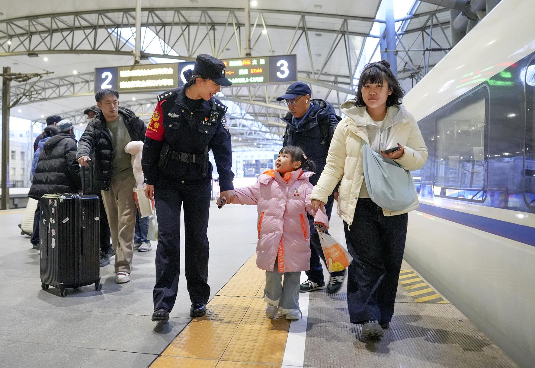 3月7日,沈陽鐵路公安處乘警支隊女子乘務(wù)大隊民警用心用情為旅客出行保駕護(hù)航,在崗位上迎接“三八”國際婦女節(jié)的到來。