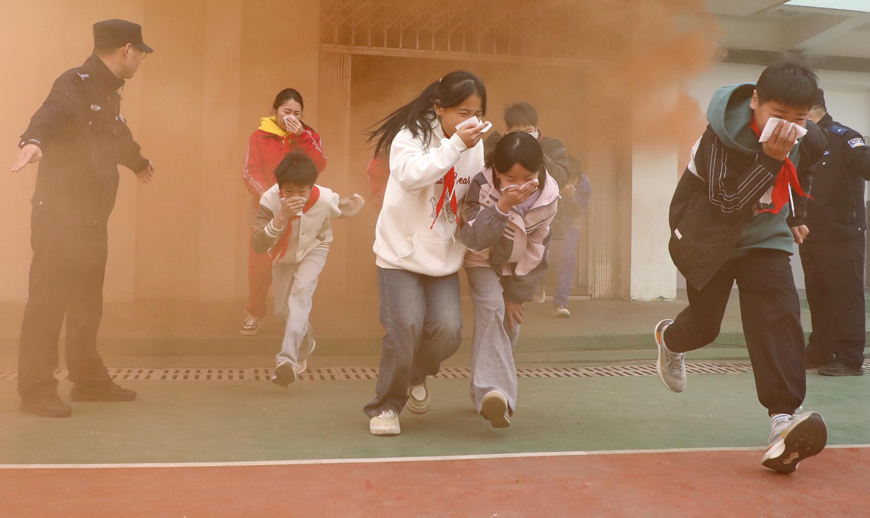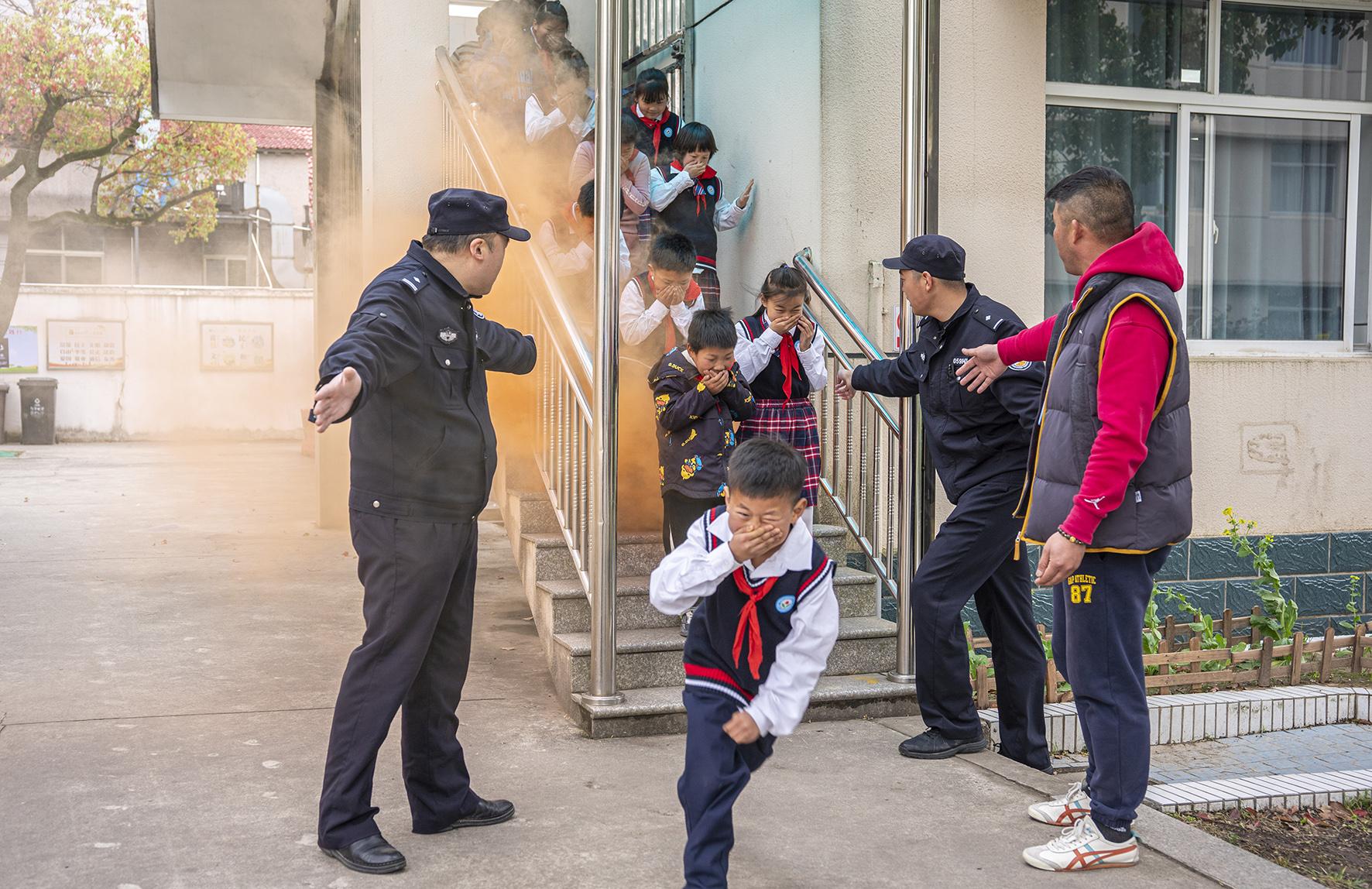 3月28日,江西省九江市公安局潯陽(yáng)分局民警組織轄區(qū)學(xué)校學(xué)生們進(jìn)行消防逃生疏散演練。