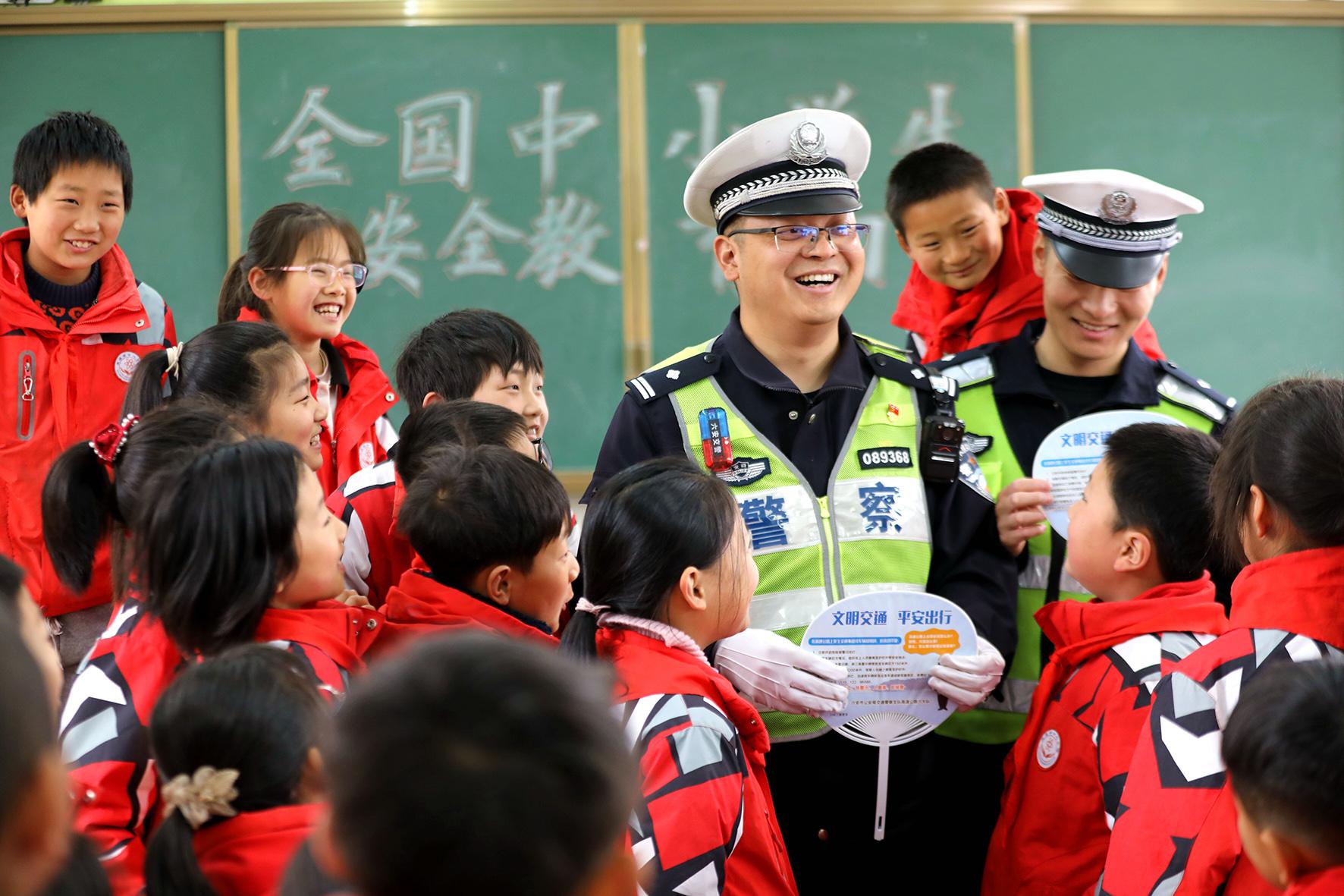 3月27日,安徽省阜南縣公安局交管大隊(duì)組織民警輔警走進(jìn)轄區(qū)中小學(xué)校開(kāi)展交通安全知識(shí)宣傳活動(dòng)。