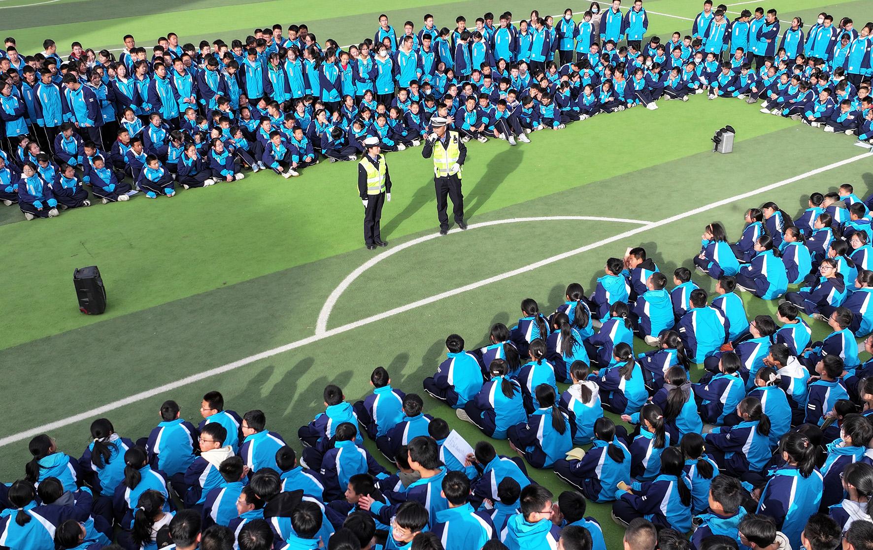 3月27日,甘肅省臨澤縣公安局交警大隊(duì)民警走進(jìn)臨澤縣第二中學(xué),向?qū)W生們普及交通安全知識(shí)。