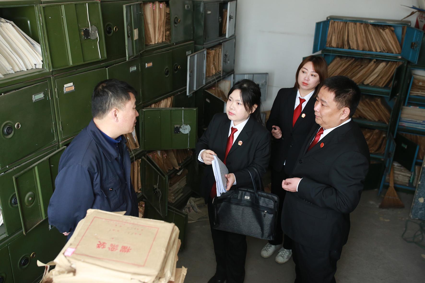圖為3月31日,法官在審理特殊工種職工申請?zhí)崆巴诵莅讣r,到企業(yè)查閱職工檔案,調查證據。