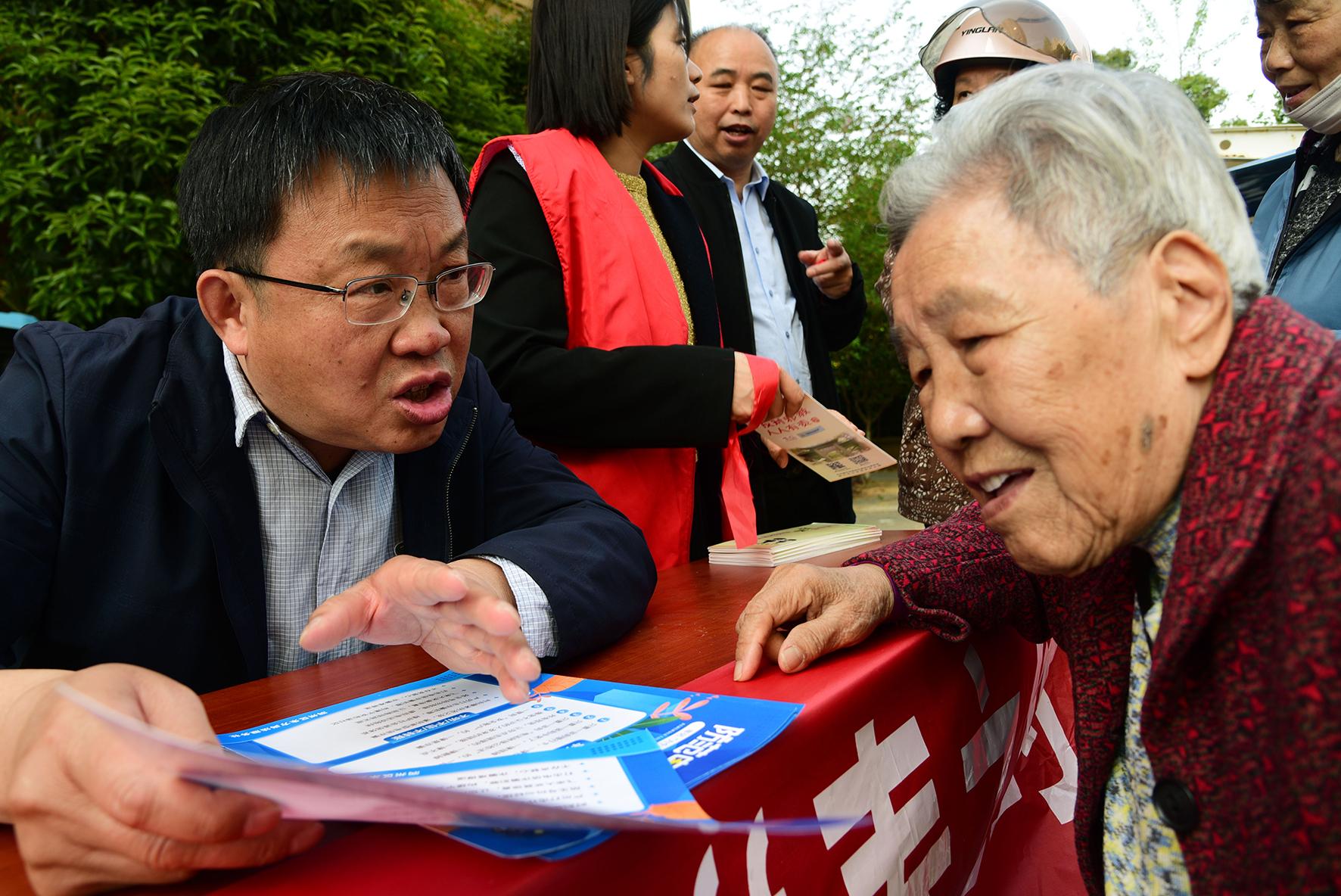 圖為律師在五里社區(qū)為老年居民講解防詐騙及相關(guān)法律維權(quán)知識(shí)。