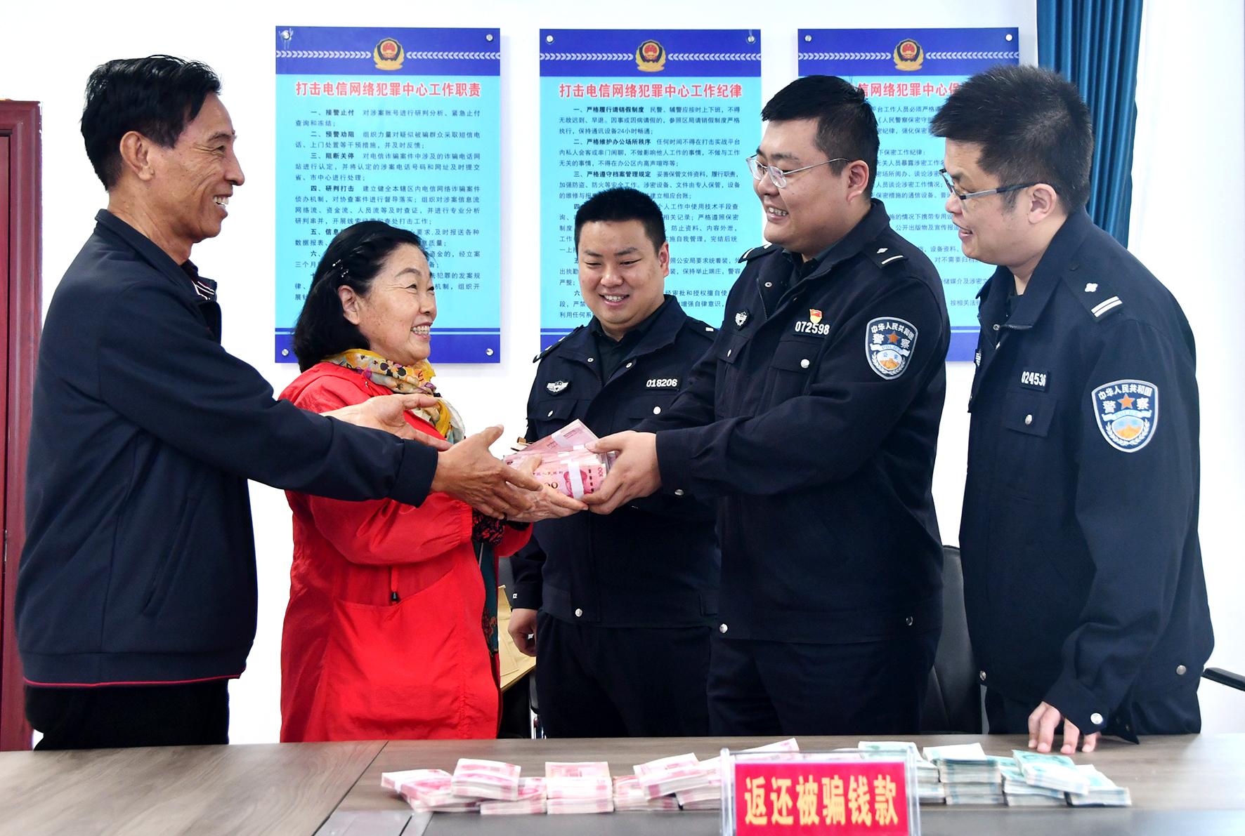 4月22日,河北省邯鄲市永年區(qū)公安局刑警大隊(duì)機(jī)動中隊(duì)舉行返贓儀式,將近日破獲的一起電信網(wǎng)絡(luò)詐騙案追回的30萬元涉案錢款返還給群眾。