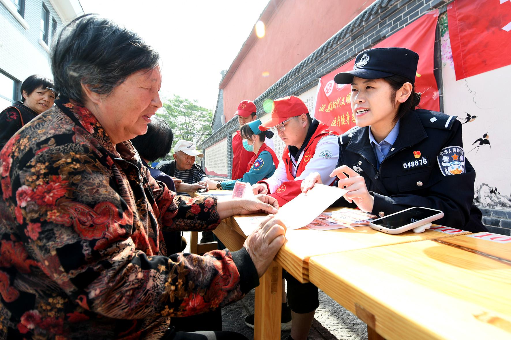 4月22日,河南省浚縣公安局白寺派出所民警來到轄區(qū)白寺村,面對(duì)面向老年人講解安全防范知識(shí)。