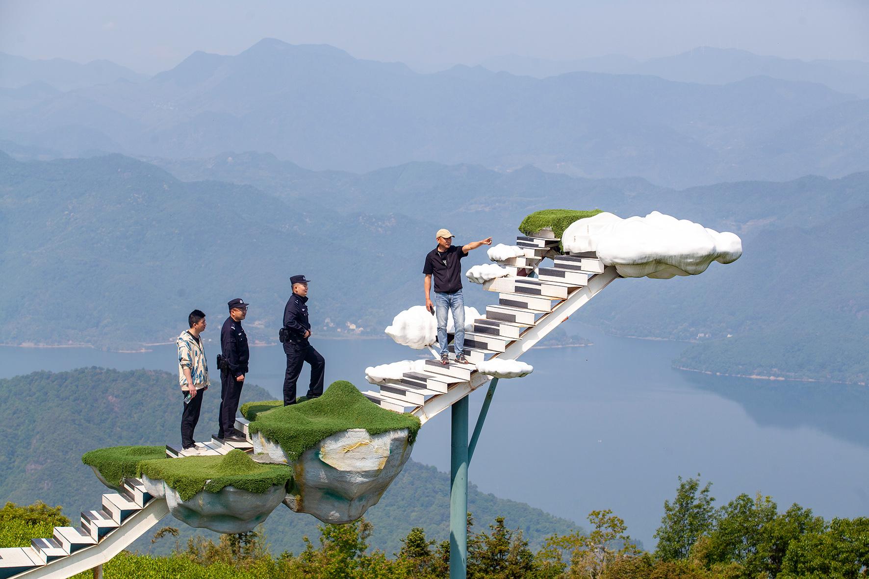 圖為4月29日,北洋派出所民警在天空之城景區(qū)開展安全檢查。