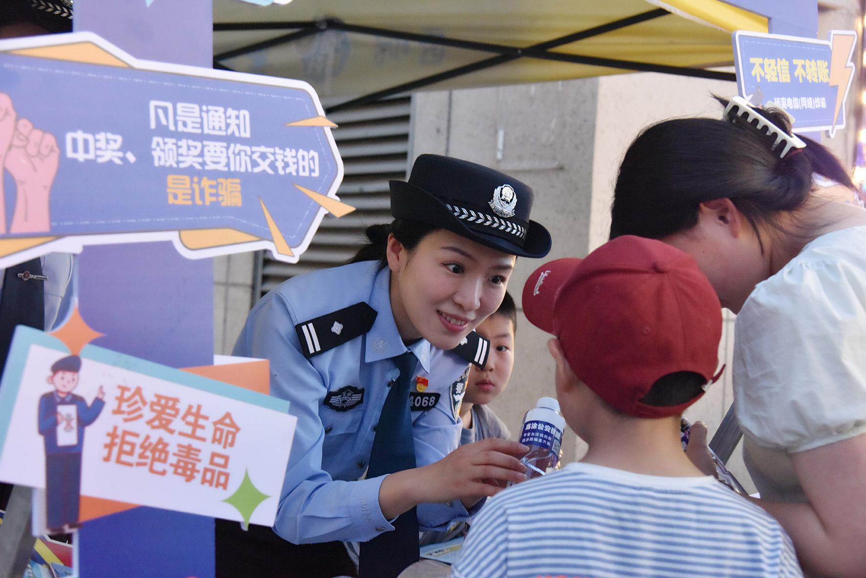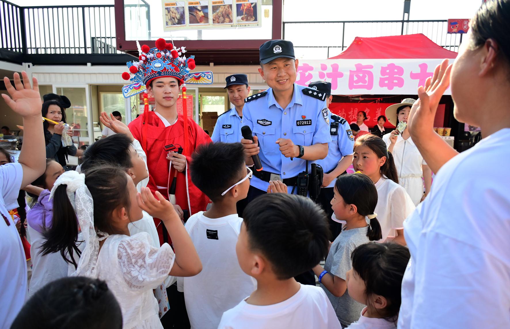 5月4日,安徽省馬鞍山市和縣公安局民警在“龍蝦啤酒音樂美食季”現(xiàn)場為游客提供安全出行咨詢服務(wù)。