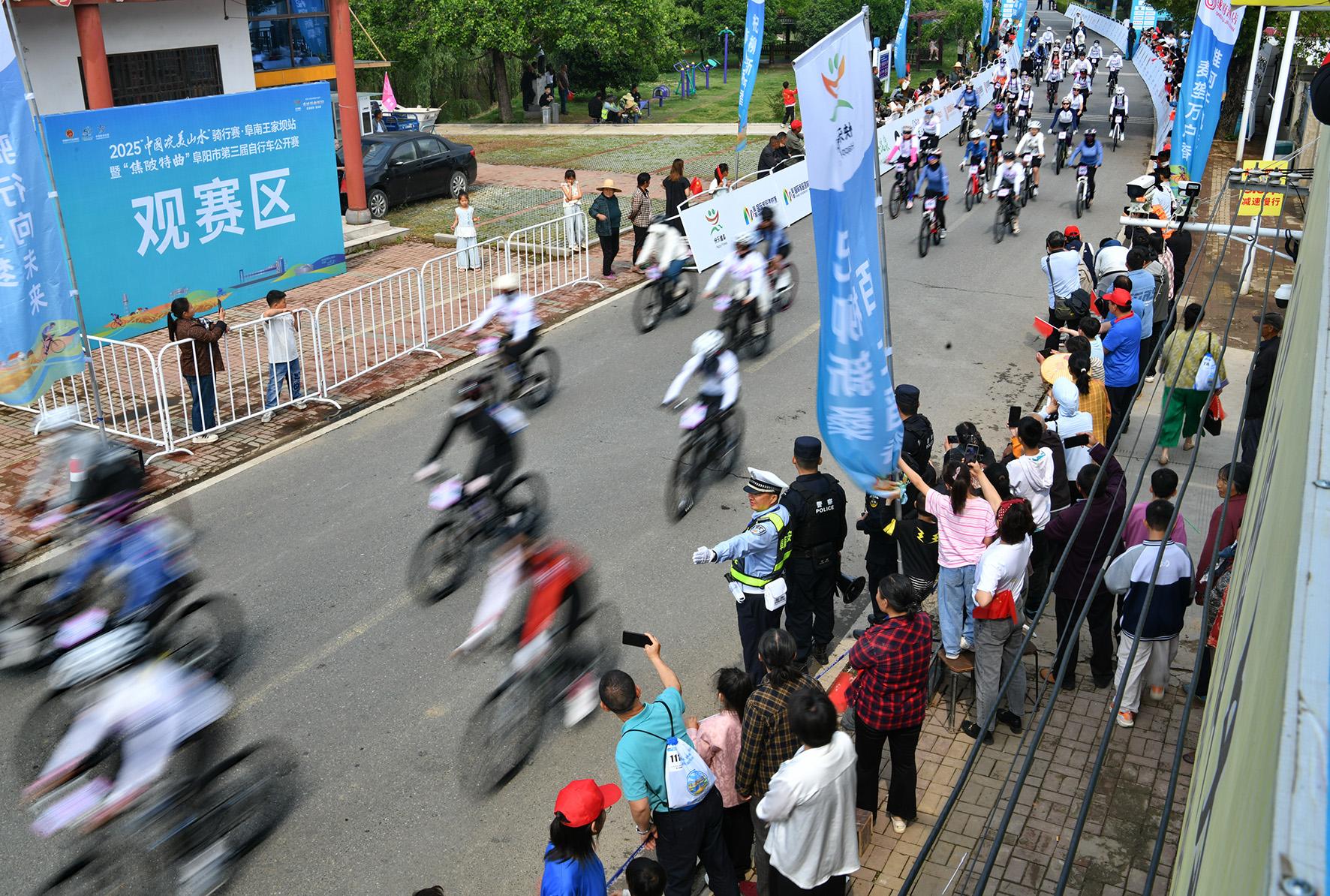 5月5日,安徽省阜南縣公安局民警在2025“中國皖美山水”騎行賽現(xiàn)場執(zhí)勤。