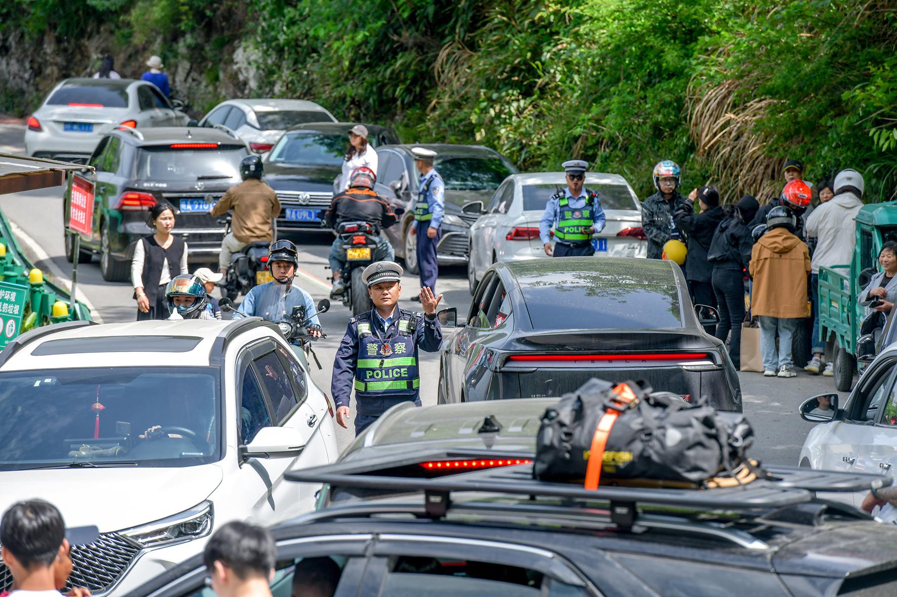 5月1日,安徽涇縣“皖南川藏線”迎來客流高峰。涇縣公安局全警動員,采取“機(jī)動+定點”的工作方式,全力保障道路通暢,為游客打造安全有序的出行環(huán)境。