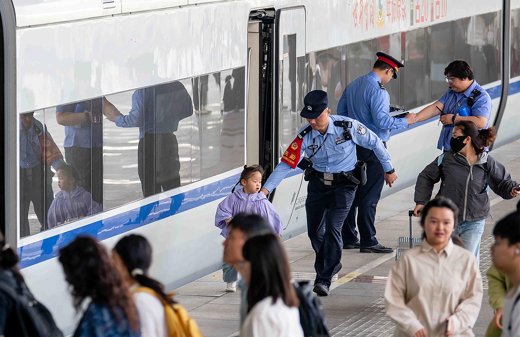 5月1日,南京鐵路公安處泰州站派出所加強警力部署,全力服務(wù)旅客“五一”出行高峰。