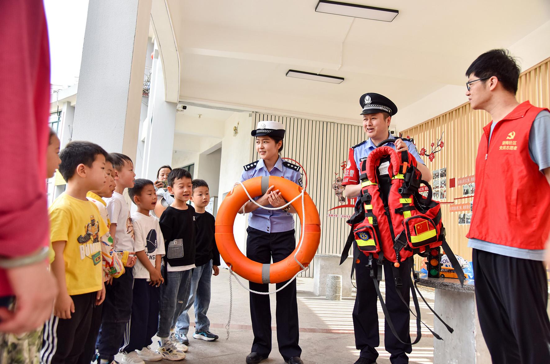 圖為民警向孩子們宣講防溺水知識。