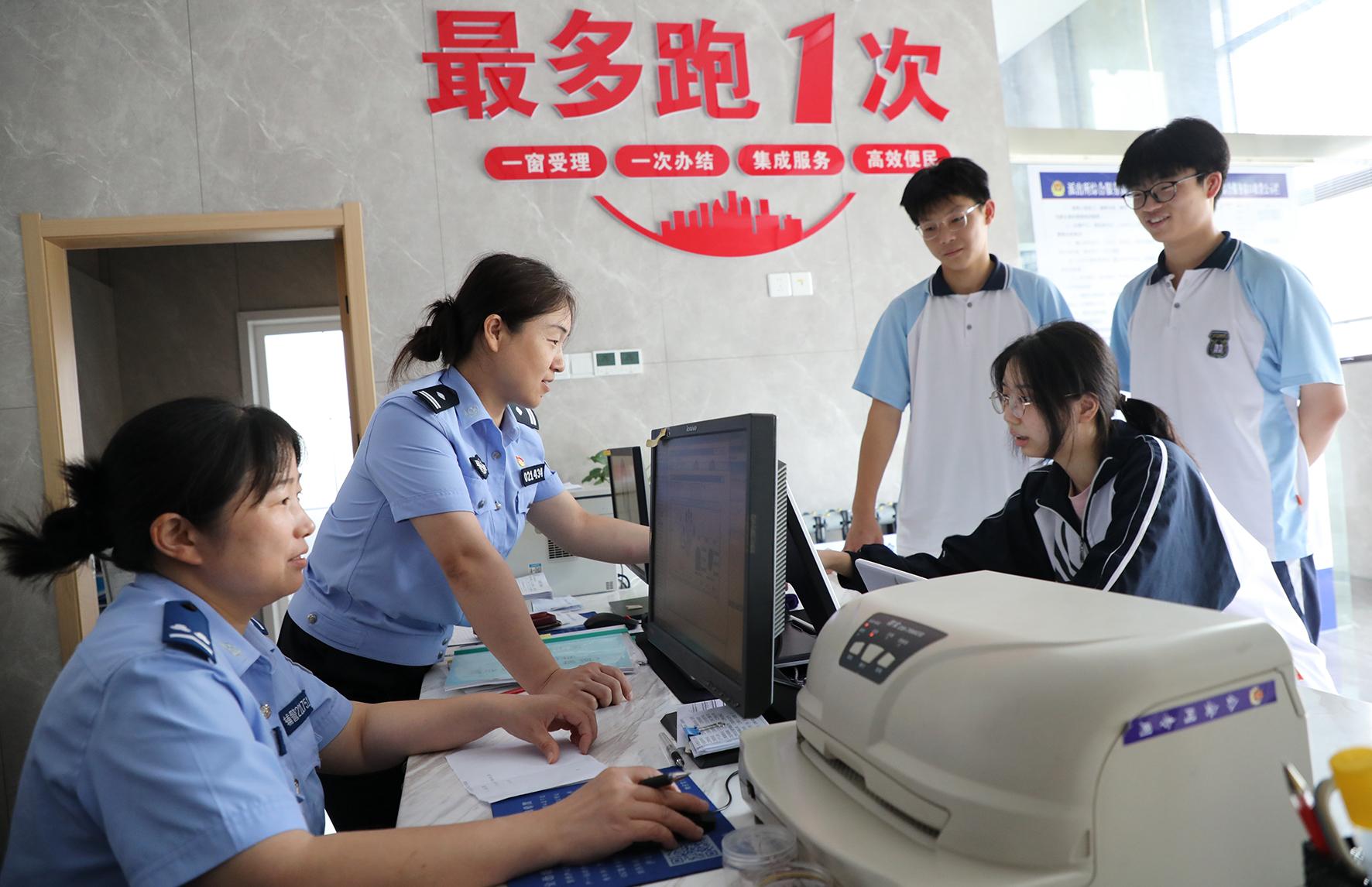 5月20日,江西省九江市公安局濂溪分局劉家塘派出所為考生開設(shè)辦證“綠色通道”,戶籍窗口民警周末和午休時(shí)間一律在崗,采取延時(shí)、錯(cuò)時(shí)、預(yù)約等方式為學(xué)生辦證提供24小時(shí)服務(wù)。
