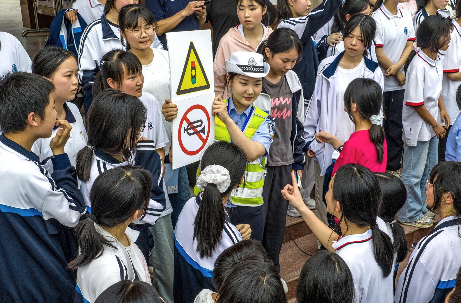 5月27日,安徽省合肥市廬江縣公安局交警大隊民警走進金牛中學(xué),為同學(xué)們上了一堂生動有趣的交通安全知識課。