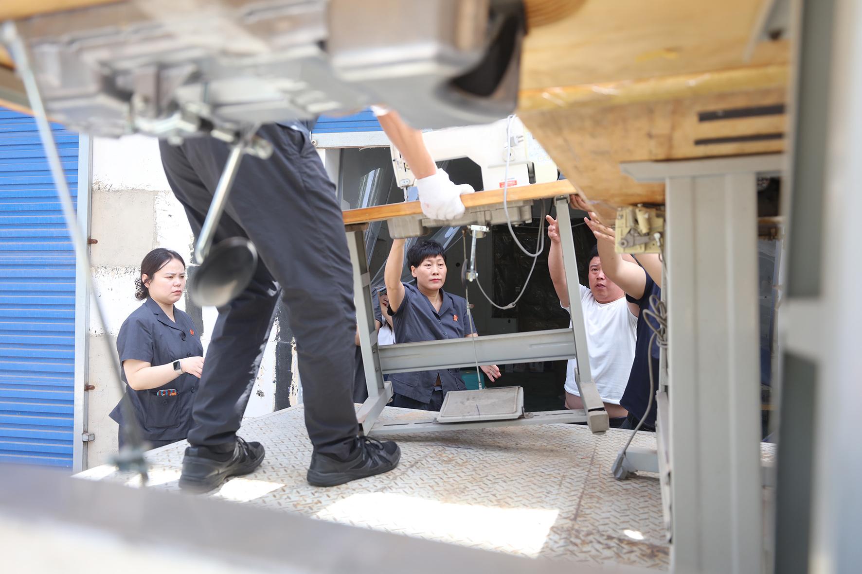 圖②:法官幫助裝運(yùn)縫紉機(jī)設(shè)備。
