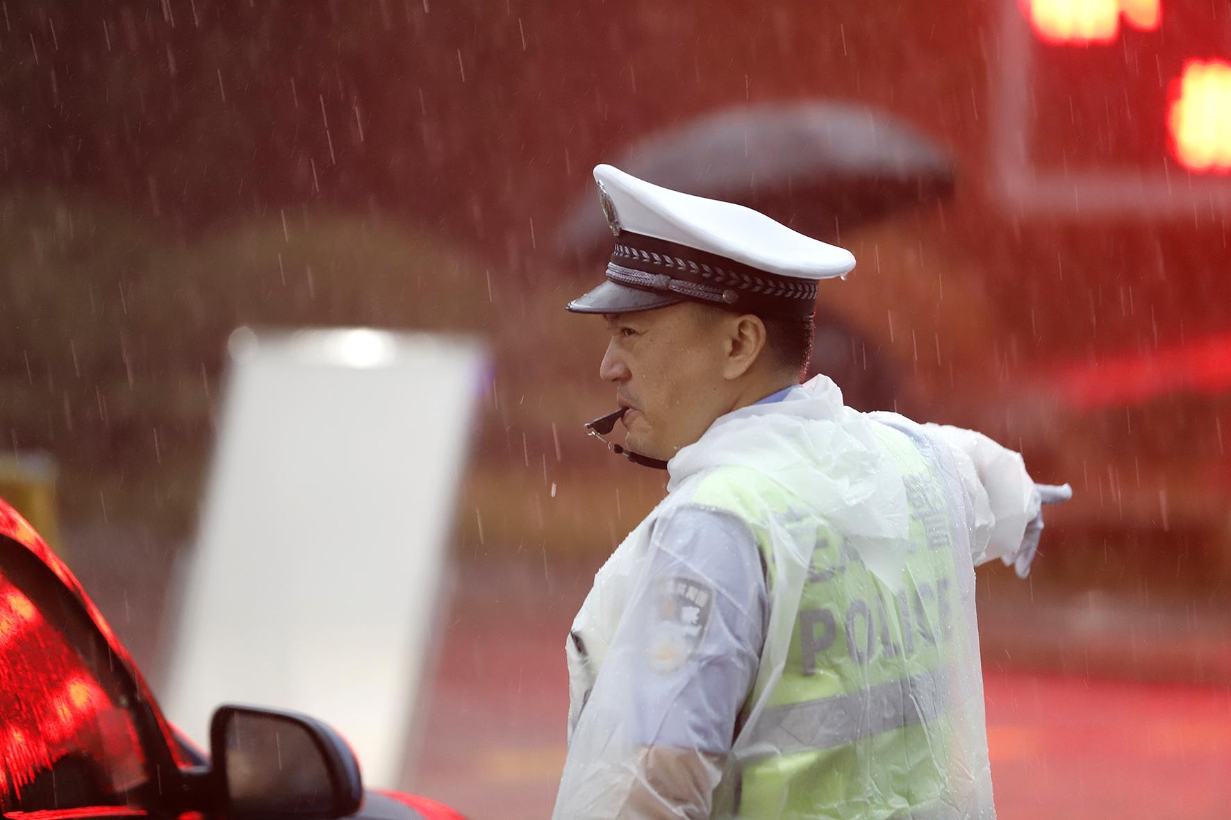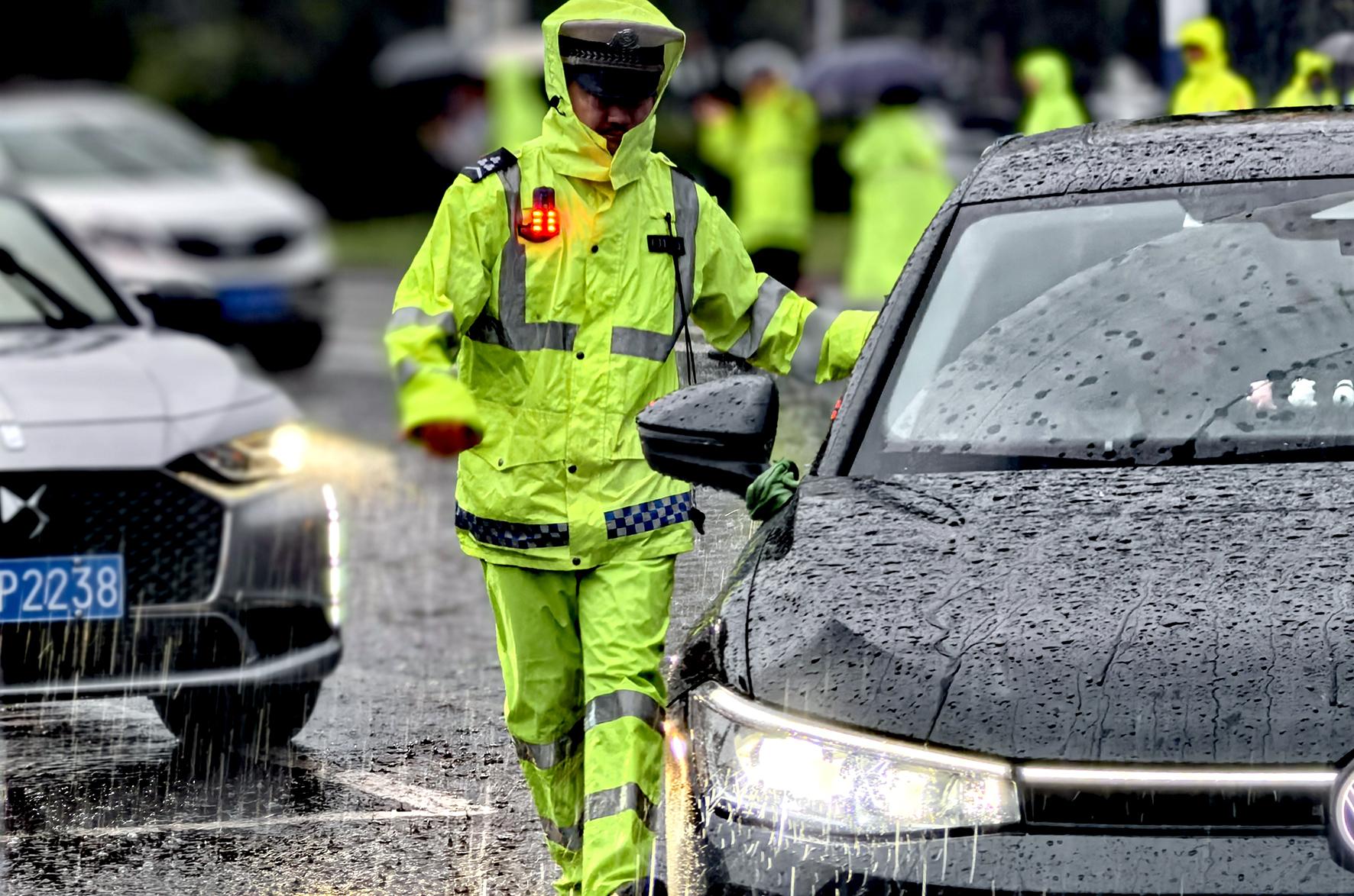 6月7日,江蘇省南通市在雨中迎來高考。南通市公安局民警全警動員,堅守崗位,護(hù)航學(xué)子圓夢。