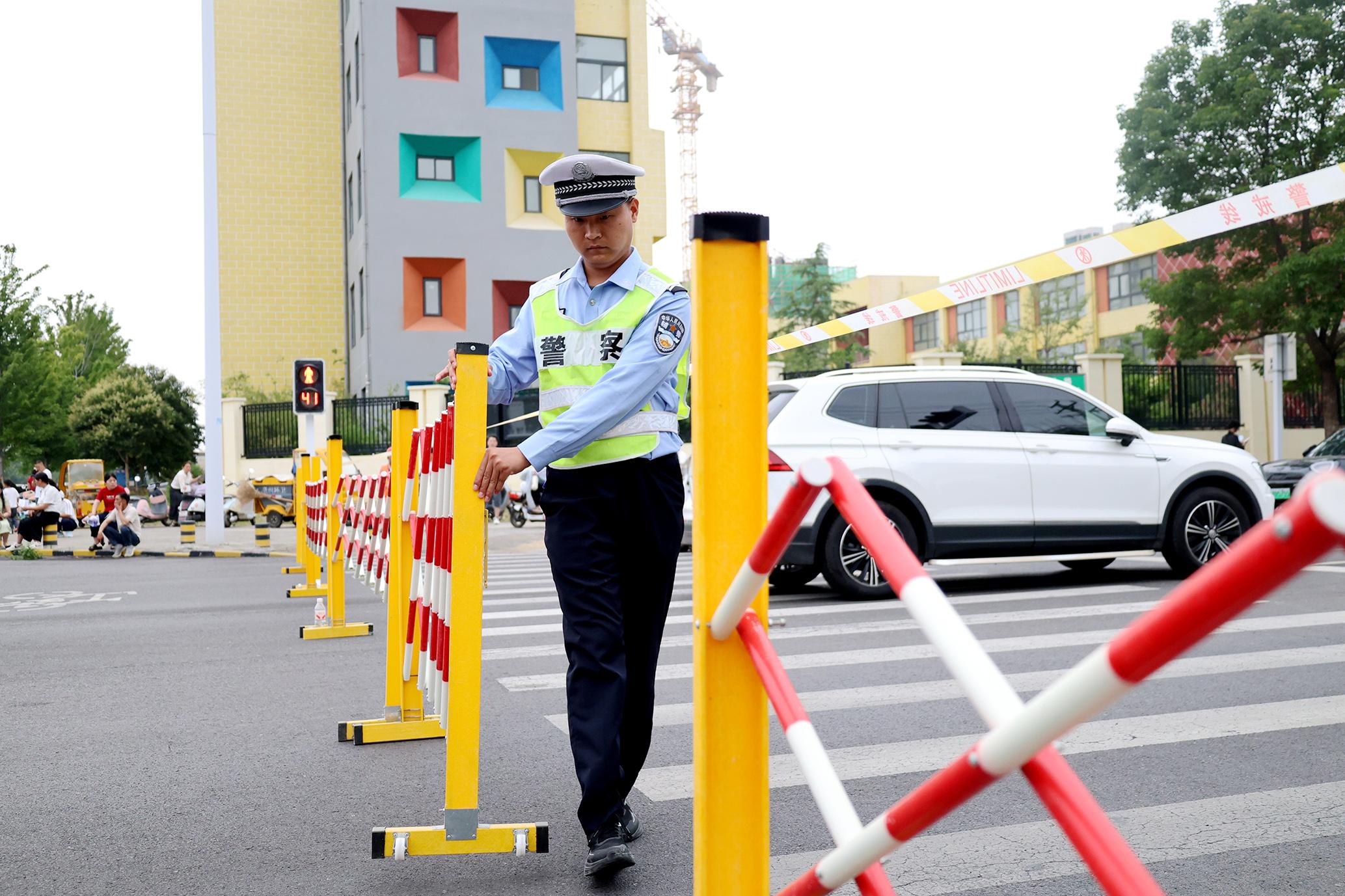6月7日,安徽省馬鞍山市和縣公安局民警在和縣第一中學(xué)考點維護(hù)秩序。