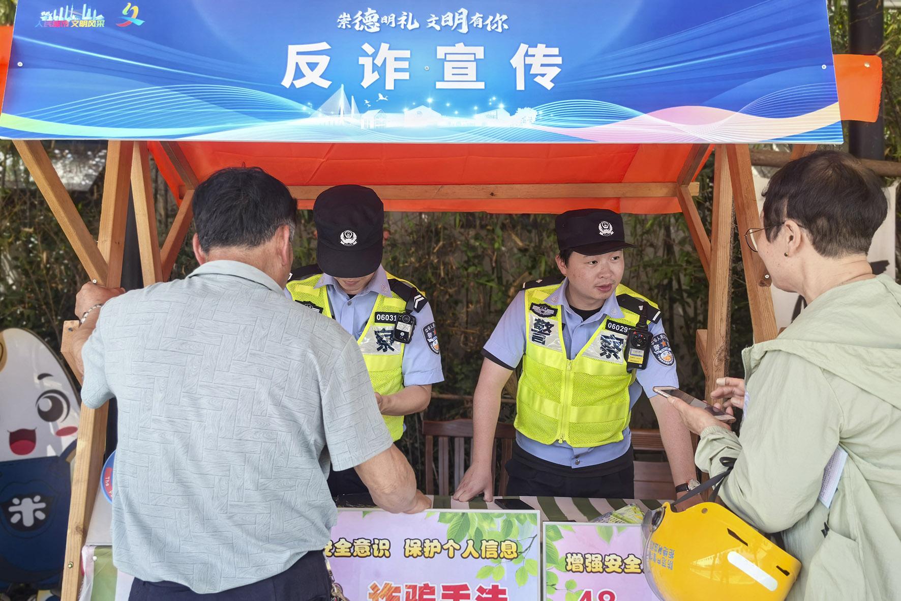 6月16日,上海市公安局崇明分局新村派出所民警結(jié)合“全民反詐在行動(dòng)”集中宣傳月活動(dòng),來(lái)到新村鄉(xiāng)稻米文化活動(dòng)中心向群眾開展防范電信網(wǎng)絡(luò)詐騙宣傳。