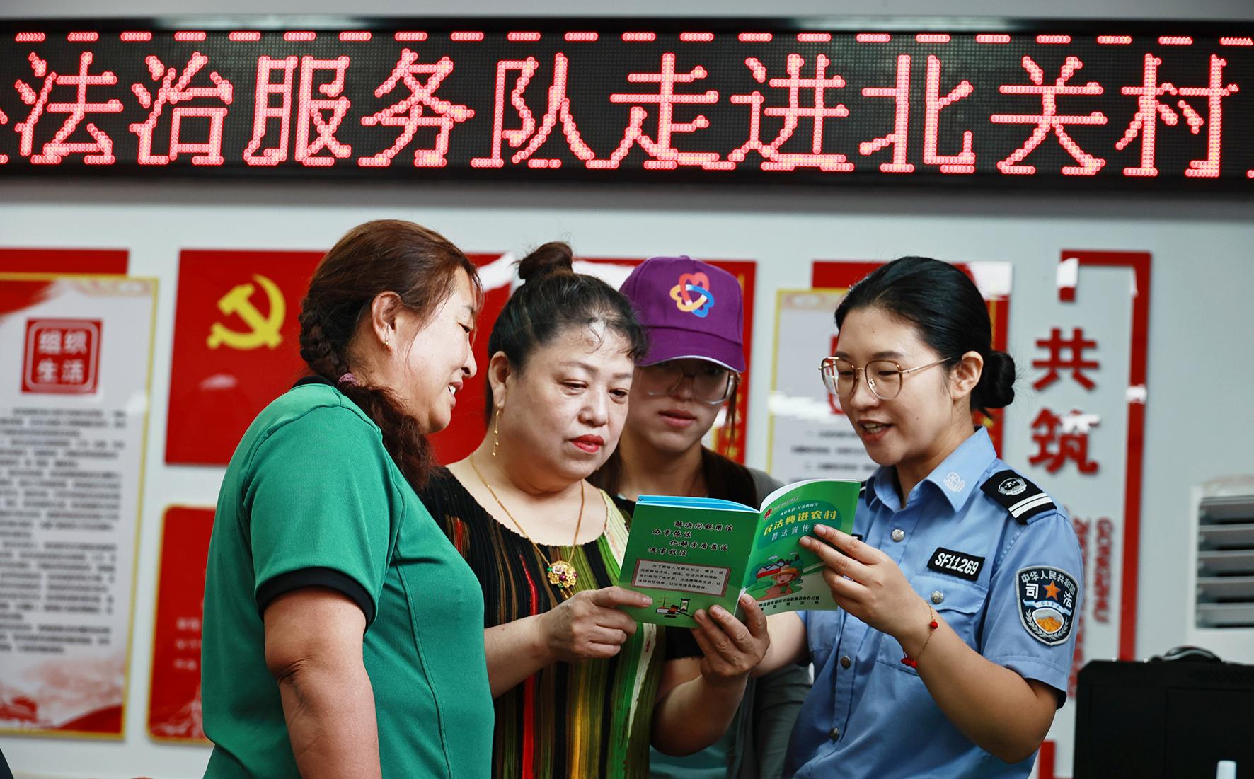圖為法治服務(wù)隊(duì)隊(duì)員在龍興鎮(zhèn)北關(guān)村為群眾解讀法律問(wèn)題。