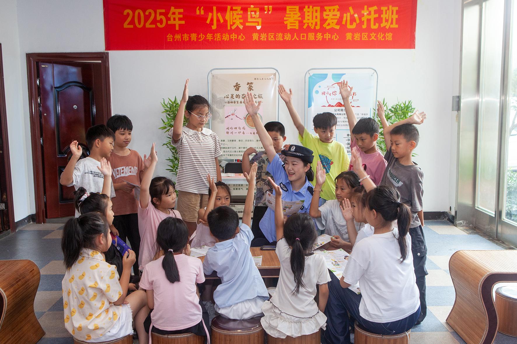 7月9日,浙江省臺(tái)州市公安局城東派出所民警來(lái)到位于東城街道的“小候鳥(niǎo)”暑期愛(ài)心托班,給這些暑假與父母團(tuán)聚的“小候鳥(niǎo)”們上了一堂安全防范課。