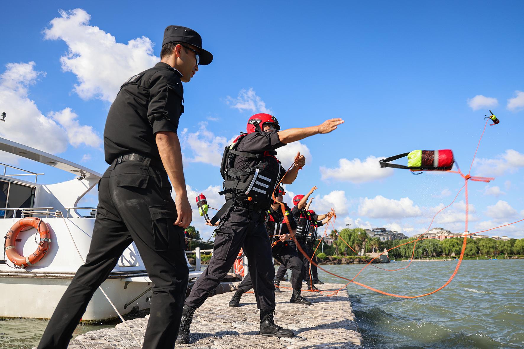 7月9日,浙江省嘉興市公安局南湖區(qū)分局巡特警大隊開展水上防汛應急救援演練。演練設置緊急集合、穿戴救援裝備、駕駛救援沖鋒艇、拋投救援繩和無人機拋投救生圈等科目,進一步提升了應對汛期災害和突發(fā)事件的應急處置能力。