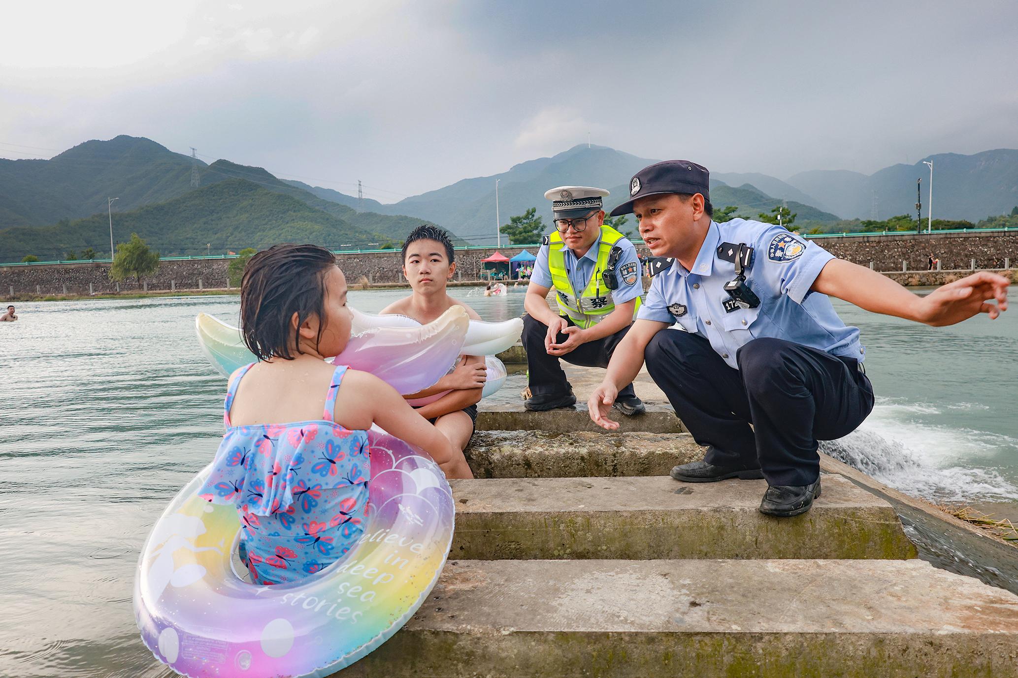 7月14日,浙江省臺(tái)州市三門縣公安局橫渡派出所組織民輔警在重點(diǎn)水域開(kāi)展防溺水巡邏,向群眾普及防溺水安全知識(shí),全力筑牢夏季防溺水安全網(wǎng)。
