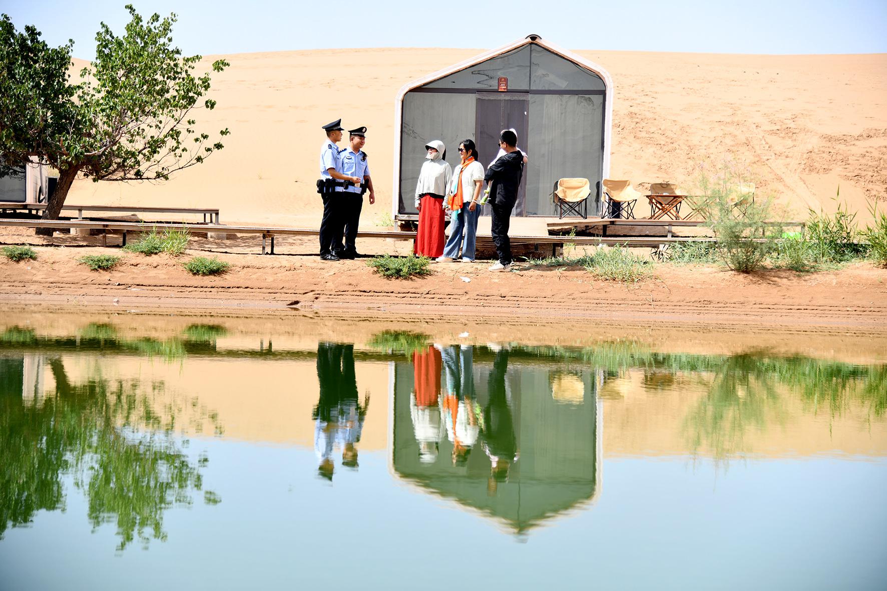 7月17日,甘肅省臨澤縣公安局板橋派出所民輔警加大對金沙灣旅游度假景區(qū)執(zhí)勤巡邏力度,提高景區(qū)見警率,全力守護(hù)景區(qū)游客安全。