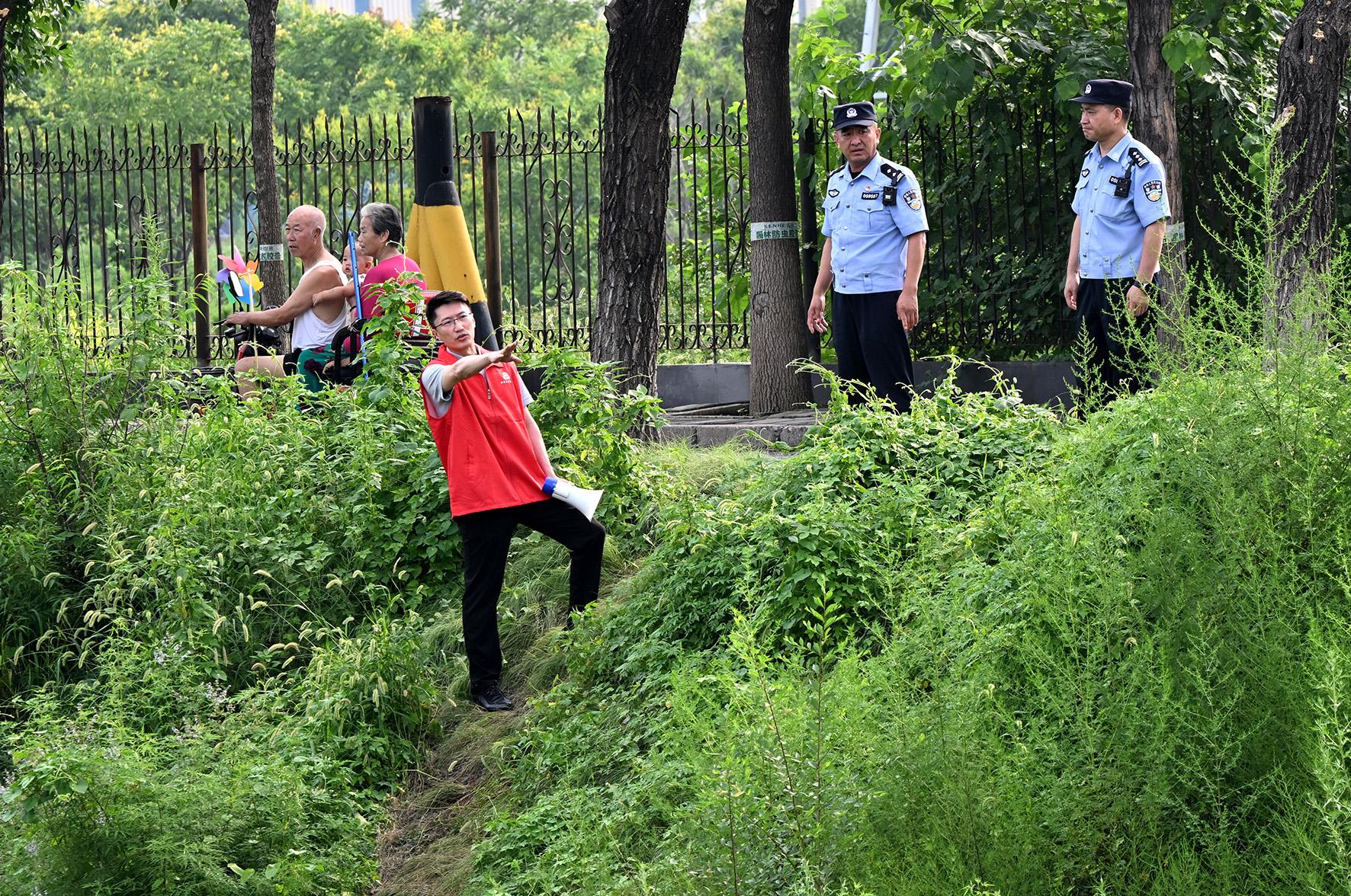 8月4日,懷柔區(qū)北房鎮(zhèn)政法委員孟德輝與北房派出所民警前往河道兩側(cè),對高危點(diǎn)位進(jìn)行研判、布控。