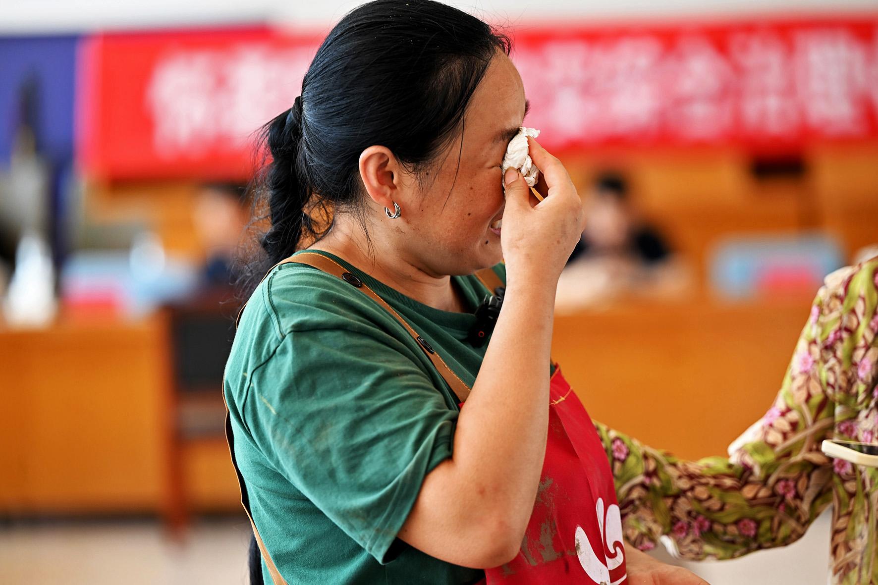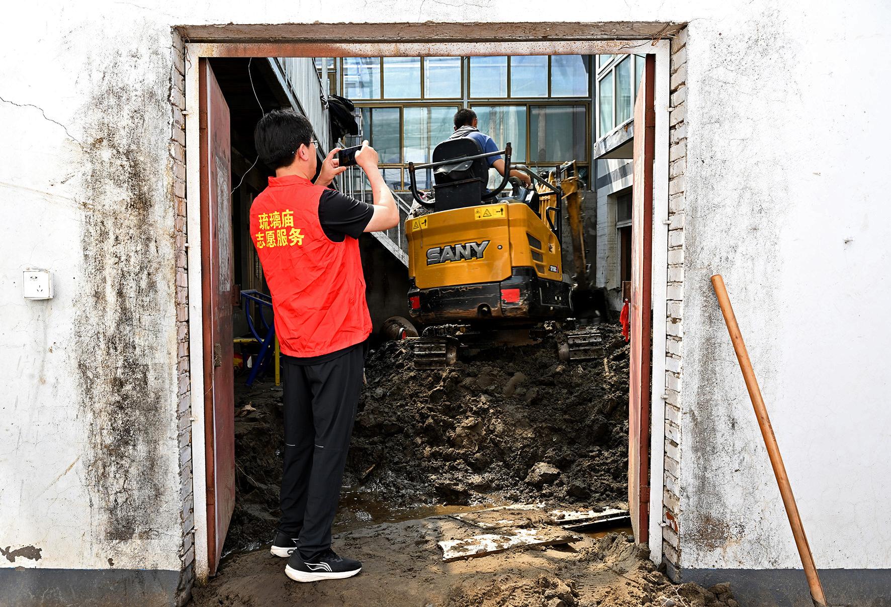 8月6日,琉璃廟鎮(zhèn)村民王磊返回家園后第一時間來到臨時“綜治中心”,向工作人員哭訴著受災(zāi)情況。