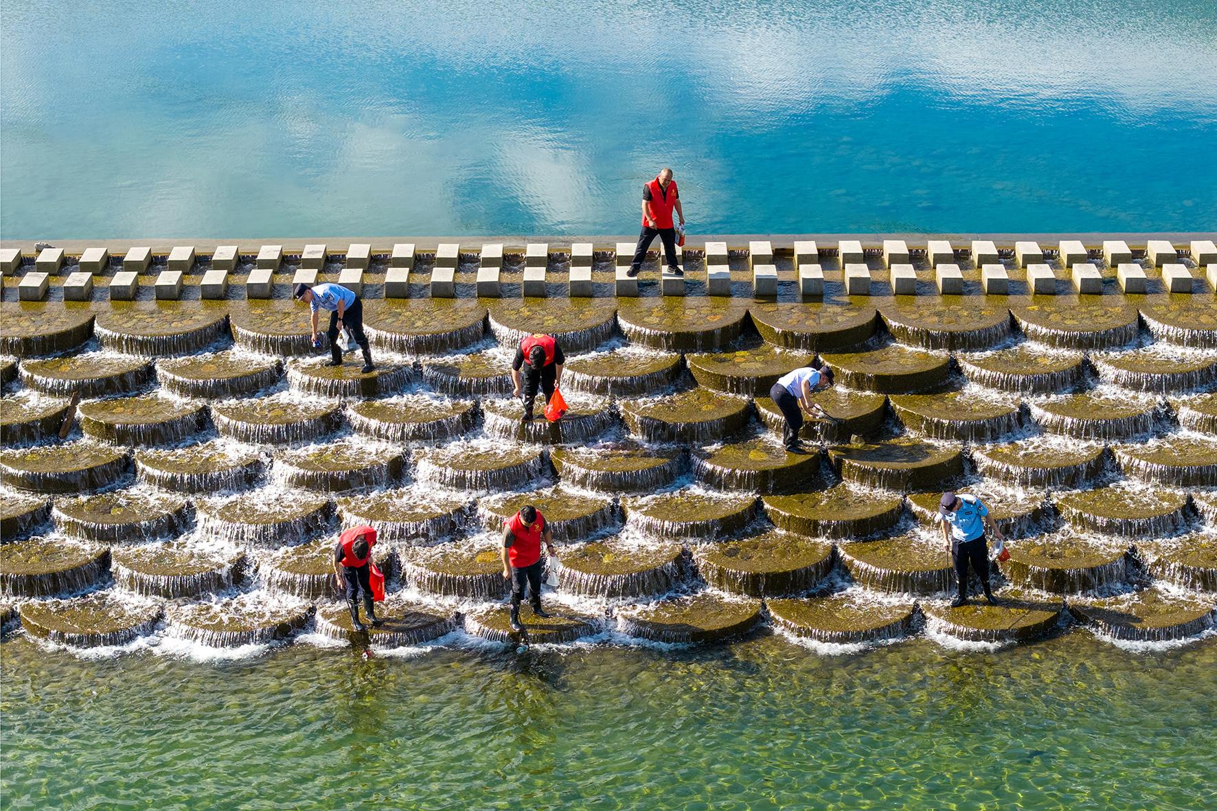 8月14日,浙江省臺州市公安局黃巖分局寧溪派出所“河道警長”和寧溪鎮(zhèn)黨員志愿者一起在轄區(qū)巡河護水,清理雜物垃圾,維護“河暢、水清、景美”的生態(tài)環(huán)境。