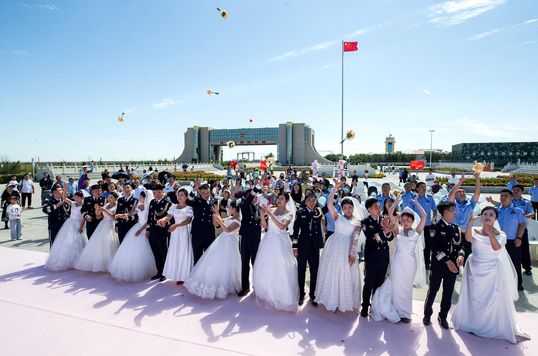 8月16日,內(nèi)蒙古出入境邊防檢查總站二連出入境邊防檢查站隆重舉辦第六屆“愛在北疆 情定國(guó)門”集體婚禮,9對(duì)新人在象征著國(guó)家主權(quán)與尊嚴(yán)的巍峨國(guó)門前,許下了“執(zhí)子之手 與子偕老”的誓言。
