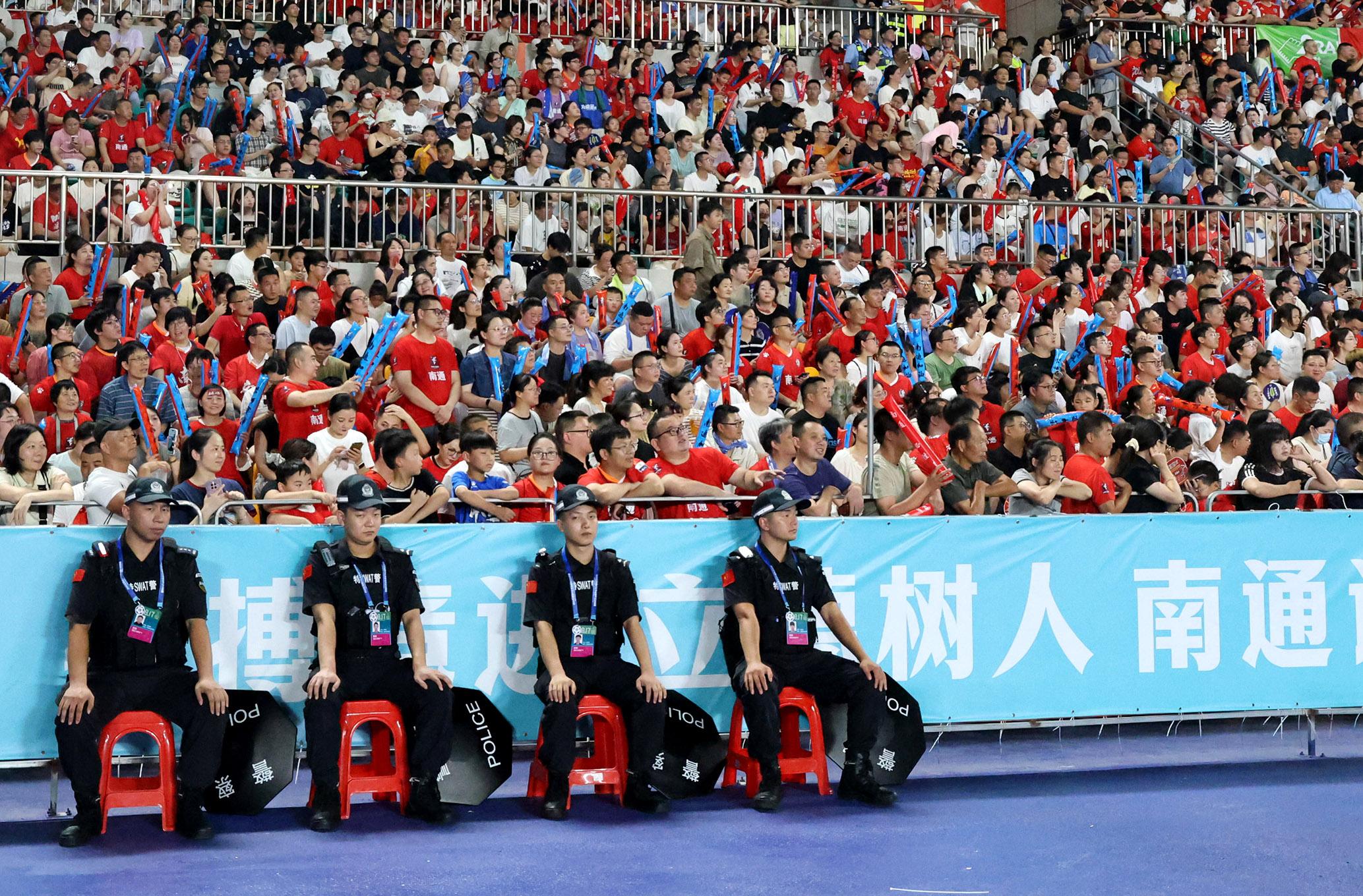 8月17日,江蘇省南通市公安局制定周密方案,抽調(diào)精干警力,全力以赴守護(hù)江蘇省城市足球聯(lián)賽(“蘇超”)的順利舉行。