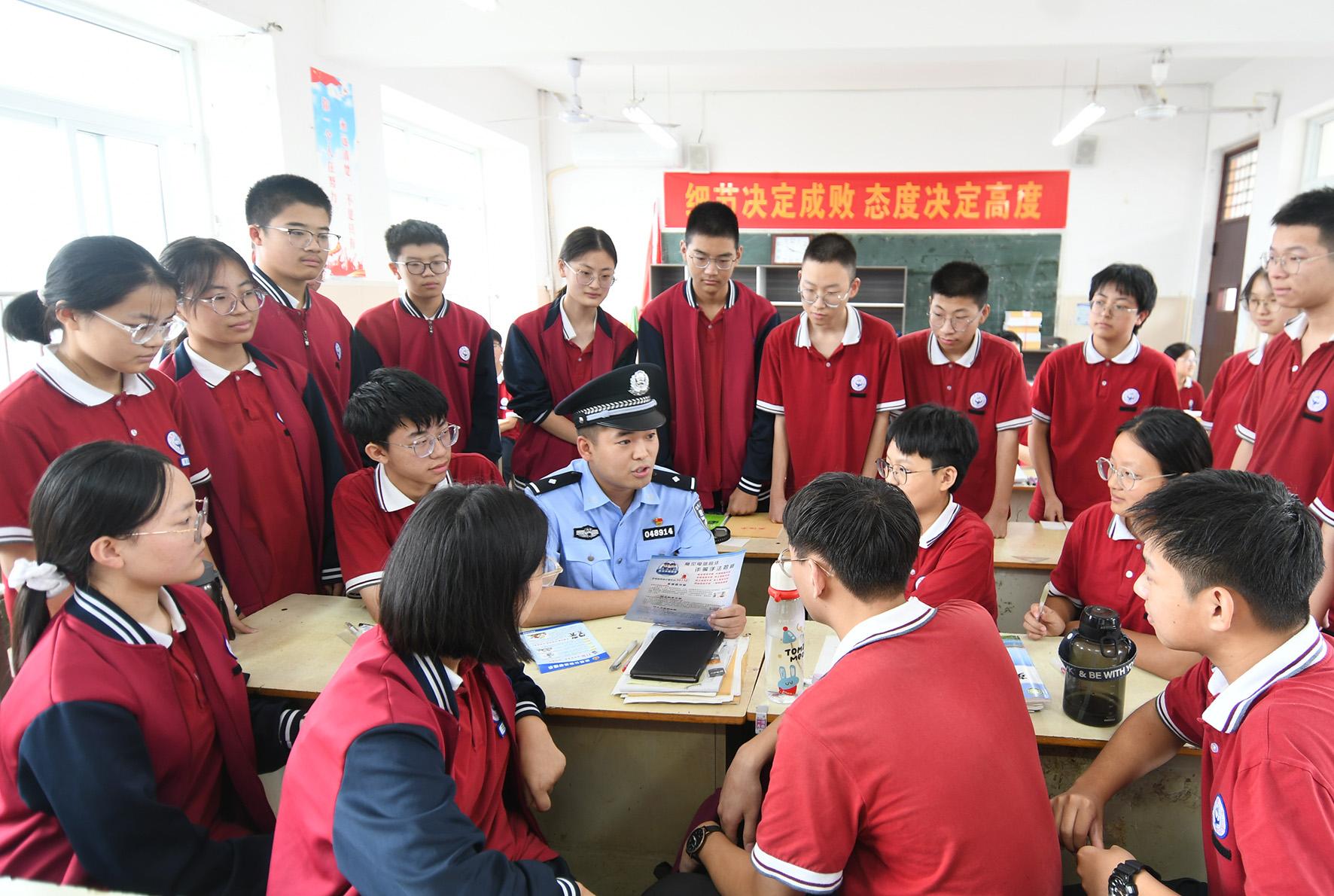 9月5日,河南省浚縣公安局伾山派出所民警走進(jìn)第一高級中學(xué)通過開設(shè)“平安課堂”,向同學(xué)們宣講安全防范知識。