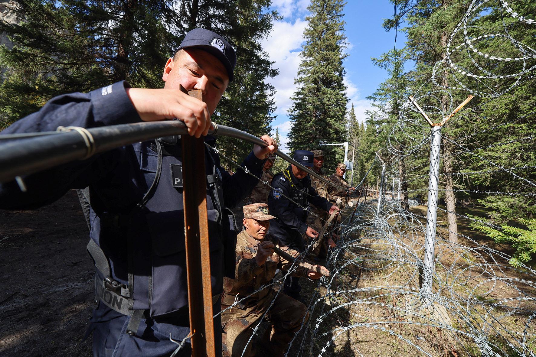9月18日,新疆阿勒泰邊境管理支隊(duì)吐爾洪邊境派出所組織民警對(duì)阿拉爾夏牧場(chǎng)區(qū)域開展巡邊踏查、修繕邊境設(shè)施等工作。