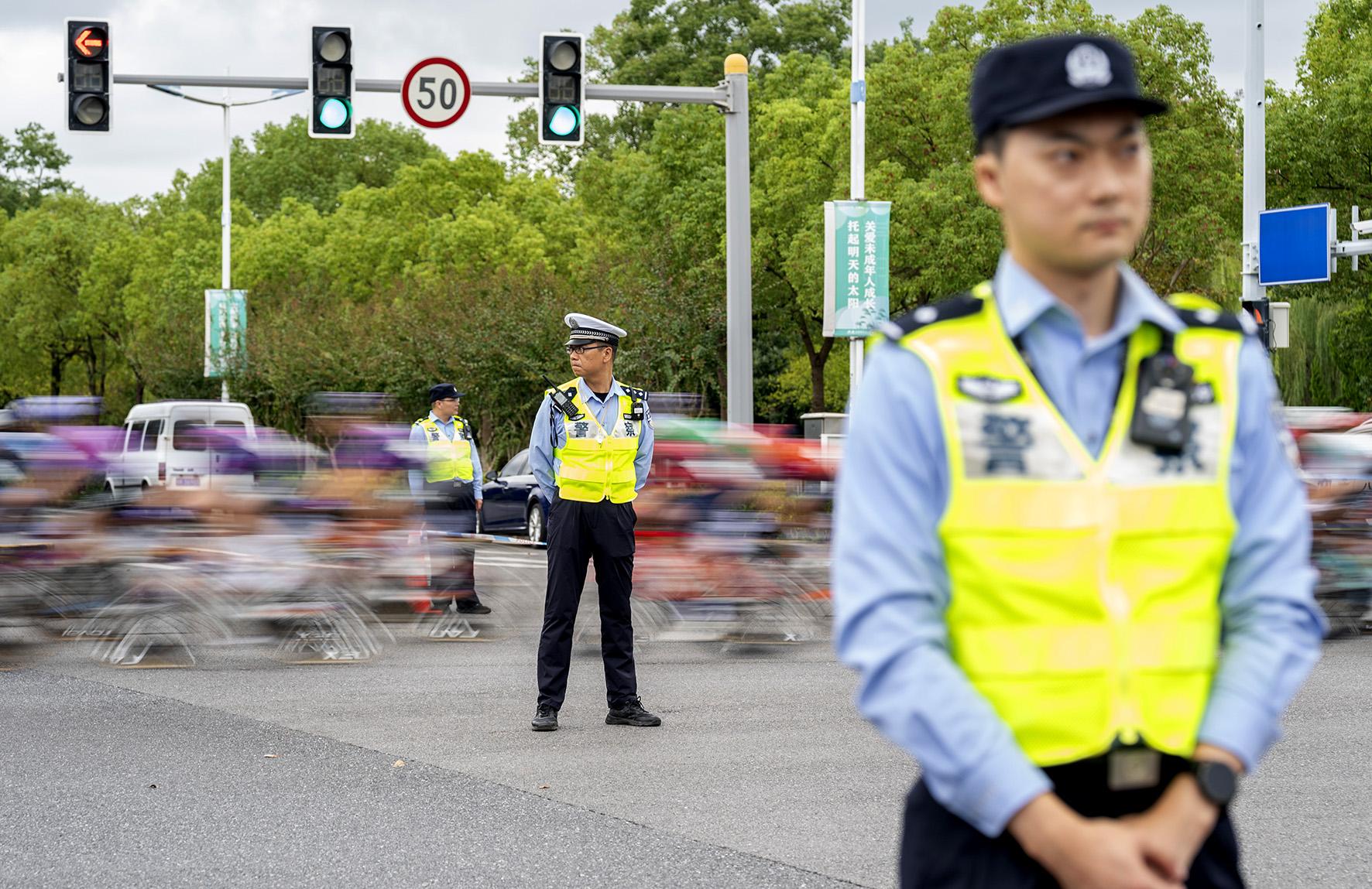 10月16日,上海市公安局崇明分局交管支隊民輔警在2025環(huán)崇明島國際自盟女子公路世界巡回賽賽道沿線開展執(zhí)勤工作。