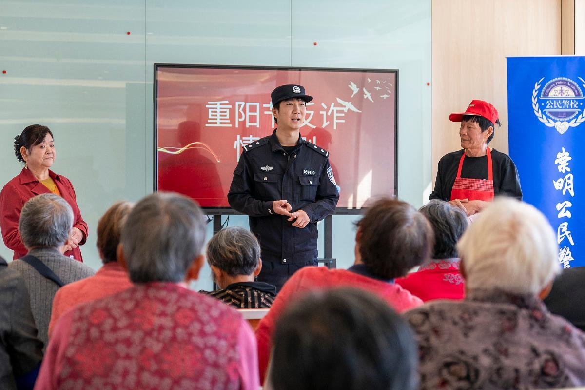 10月29日,上海市公安局崇明分局港西派出所組織民警來到轄區(qū)綜合為老服務中心,開展重陽節(jié)慰問和反詐宣傳。