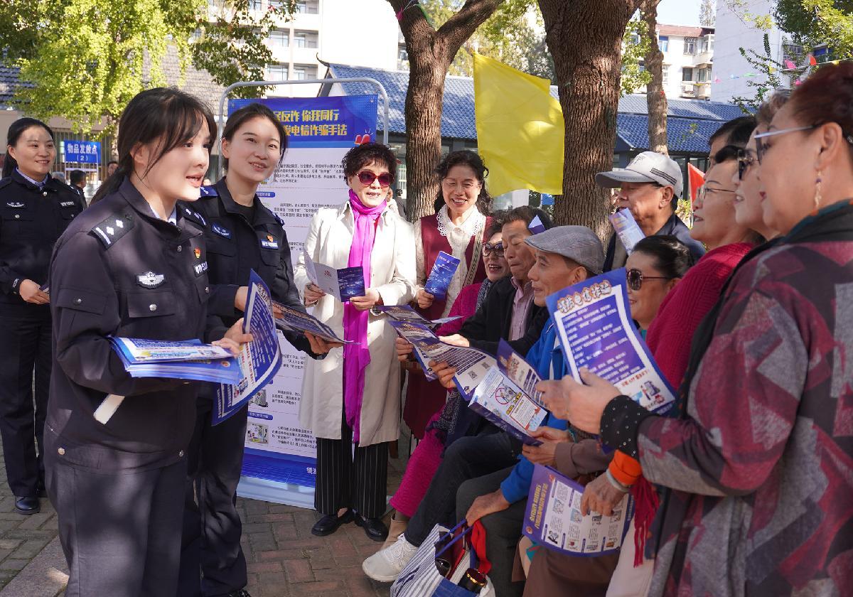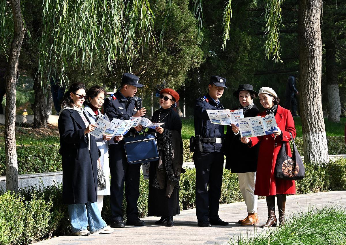 10月28日,甘肅省蘭州市公安局安寧分局劉家堡派出所民輔警走進蘭州市植物園,結合近期高發(fā)的電詐案例向中老年群眾講解防詐技巧。