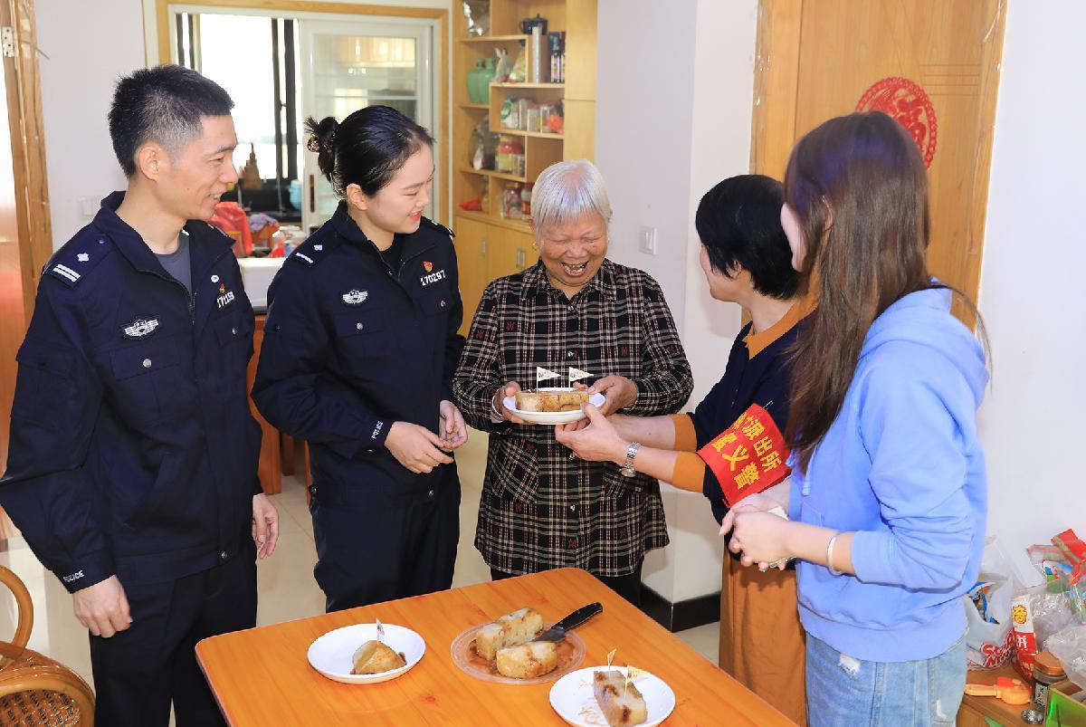 10月28日,浙江省臺州市公安局黃巖分局民警、義警攜手社區(qū)工作人員走進轄區(qū)獨居老人家中,送上重陽糕及老年人防詐手冊。