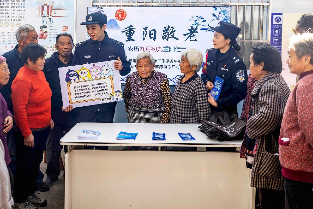 10月28日,南京鐵路公安處泰州站派出所聯(lián)合泰州市公安局海陵分局蘇陳派出所走進蘇陳鎮(zhèn)徐莊村委會,開展重陽節(jié)普法宣傳。