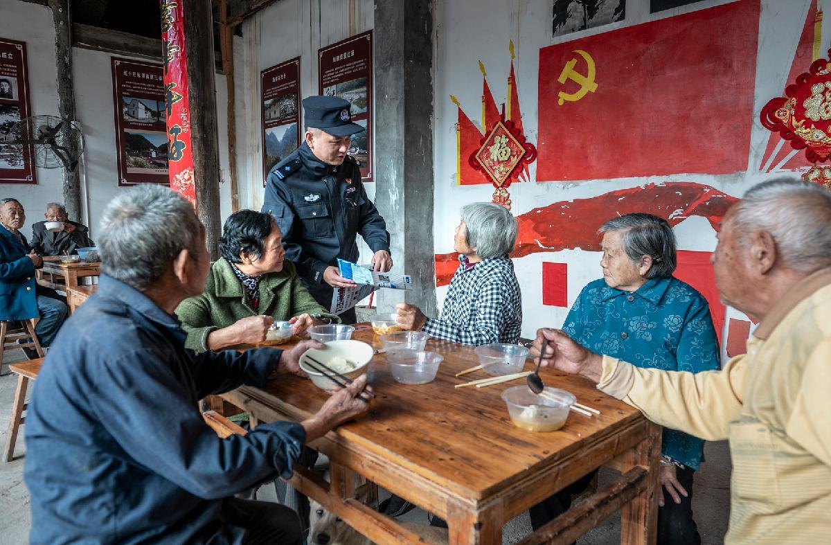 10月29日,浙江省武義縣公安局新宅派出所來到轄區(qū)南塘頭村,開展走訪助老活動,并向老人進行防范養(yǎng)老詐騙知識宣傳。