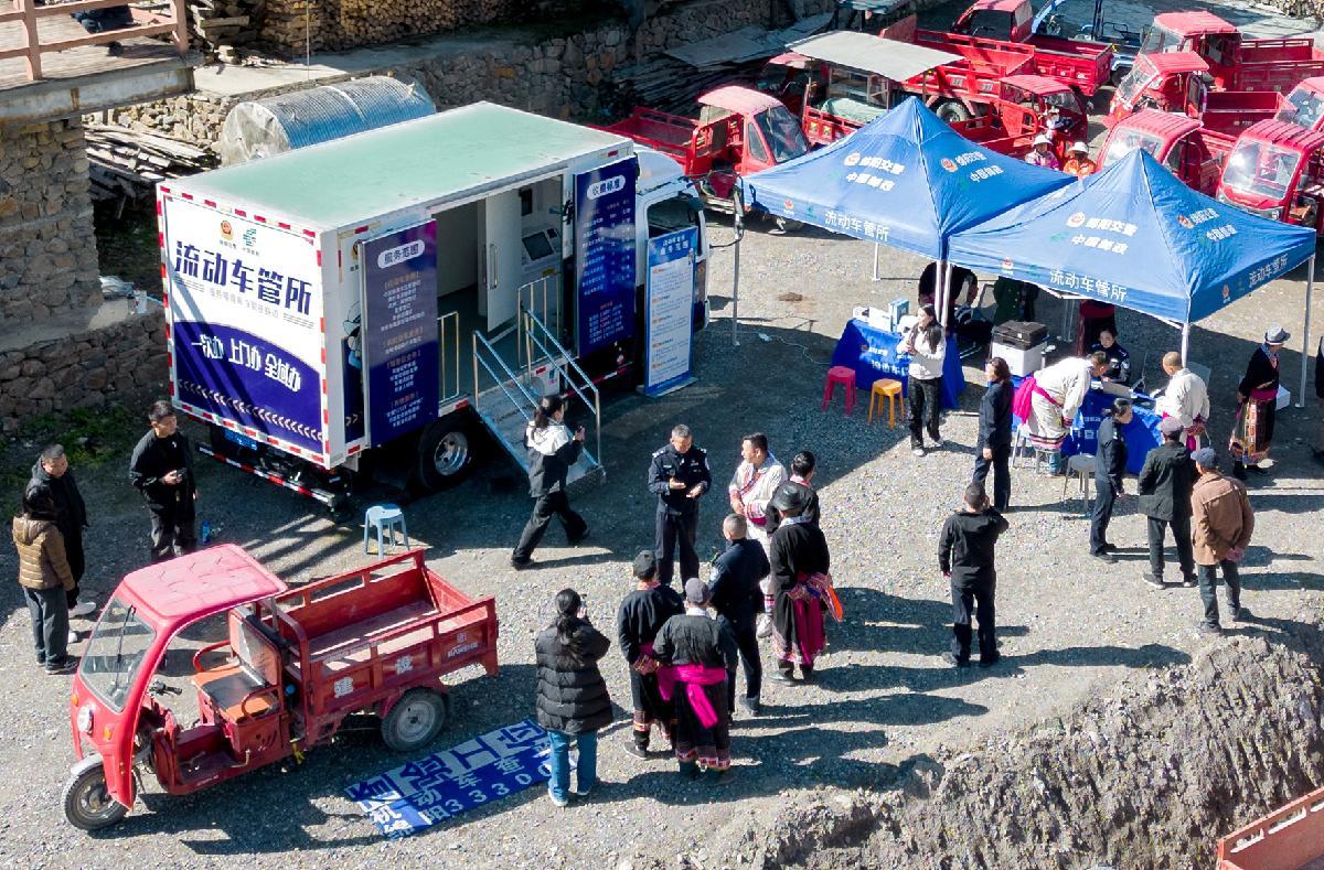 10月30日,四川省綿陽市公安局交通警察支隊(duì)將“流動(dòng)車管所”開進(jìn)平武縣白馬藏族鄉(xiāng)扒昔加古寨,為周邊群眾帶來家門口的車駕管服務(wù)。