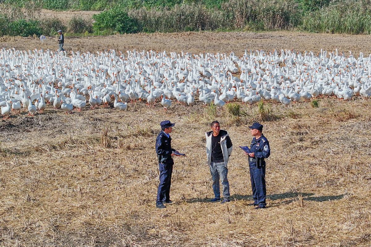 11月5日,安徽省馬鞍山市和縣公安局民警走訪大鵝養(yǎng)殖戶,了解治安狀況,傾聽農(nóng)戶訴求,并針對性開展法治宣傳。