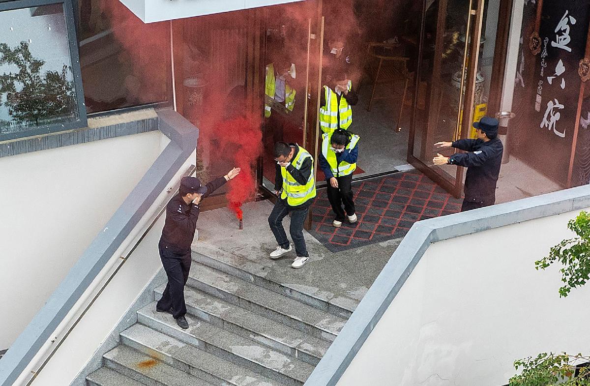 11月7日,上海市公安局崇明分局港西派出所民警走進轄區(qū)和睦佳苑社區(qū)開展消防安全演練。
