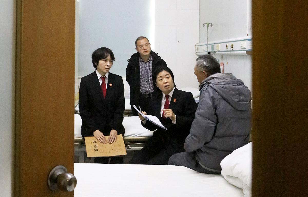 11月11日,河南省安陽縣人民法院組織干警來到醫(yī)院病房,對一起機(jī)動車交通事故責(zé)任糾紛案進(jìn)行巡回辦案,方便當(dāng)事人參與訴訟。