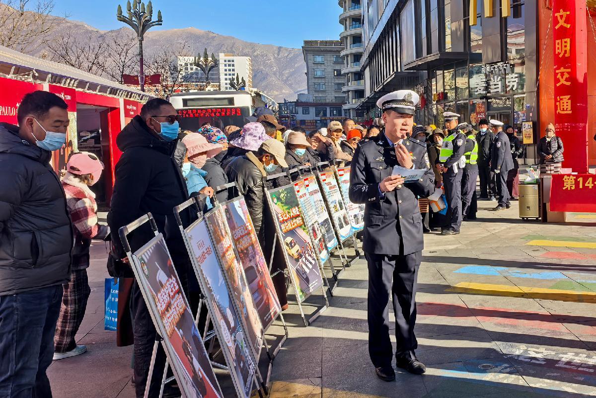 12月2日,西藏自治區(qū)山南市公安局交通管理支隊民警走進(jìn)轄區(qū)廣場開展“全國交通安全日”主題宣傳。