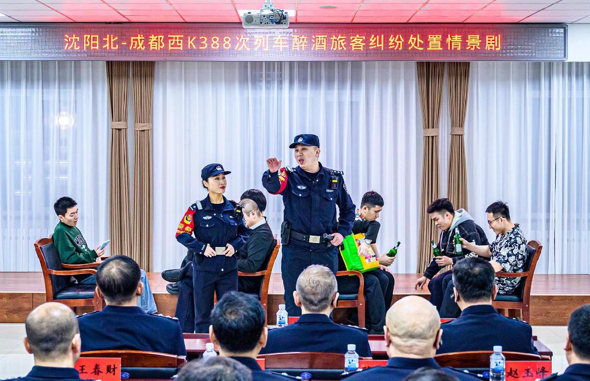 圖為12月15日,沈陽(yáng)鐵路公安局組織民警現(xiàn)場(chǎng)觀摩旅客糾紛處置情景劇。