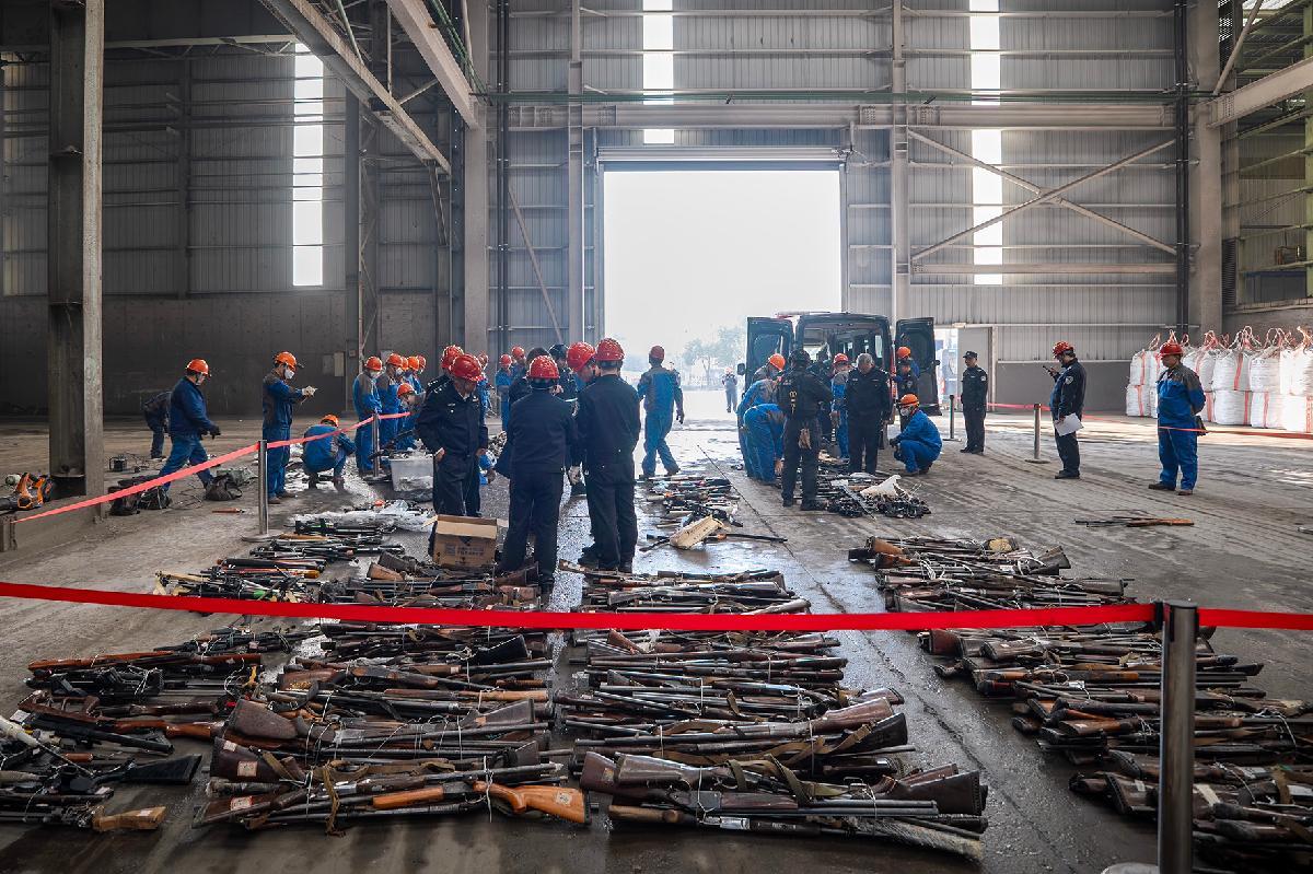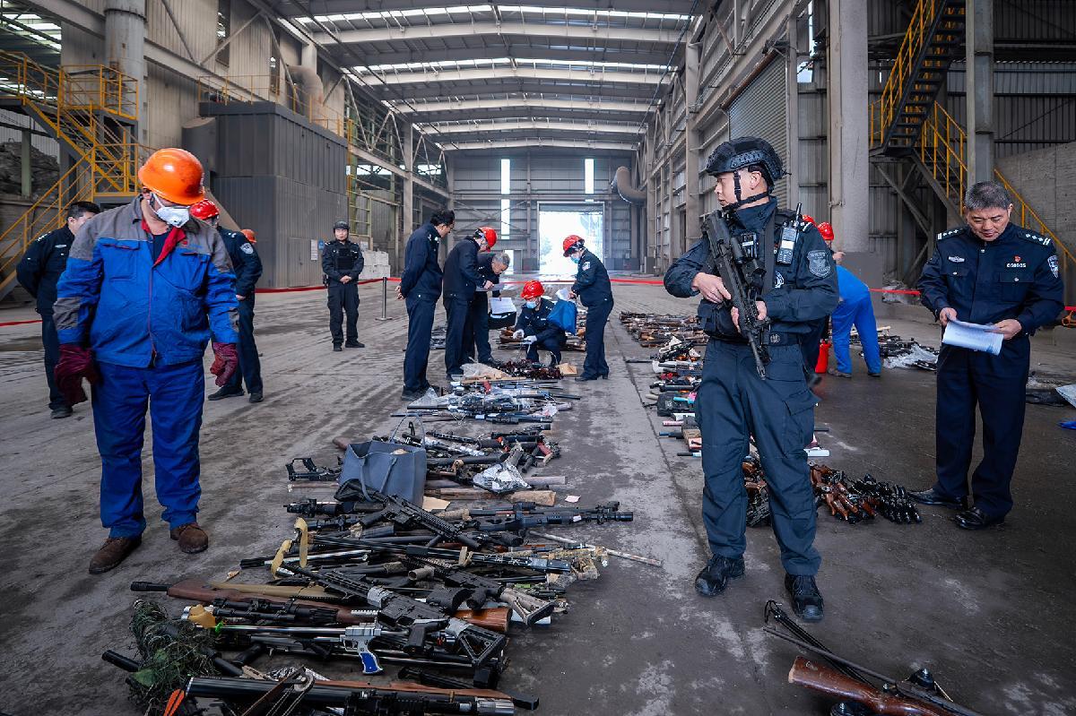 12月20日,浙江省湖州市公安局組織開展全市公安機關(guān)集中銷毀非法槍爆物品及管制刀具活動。